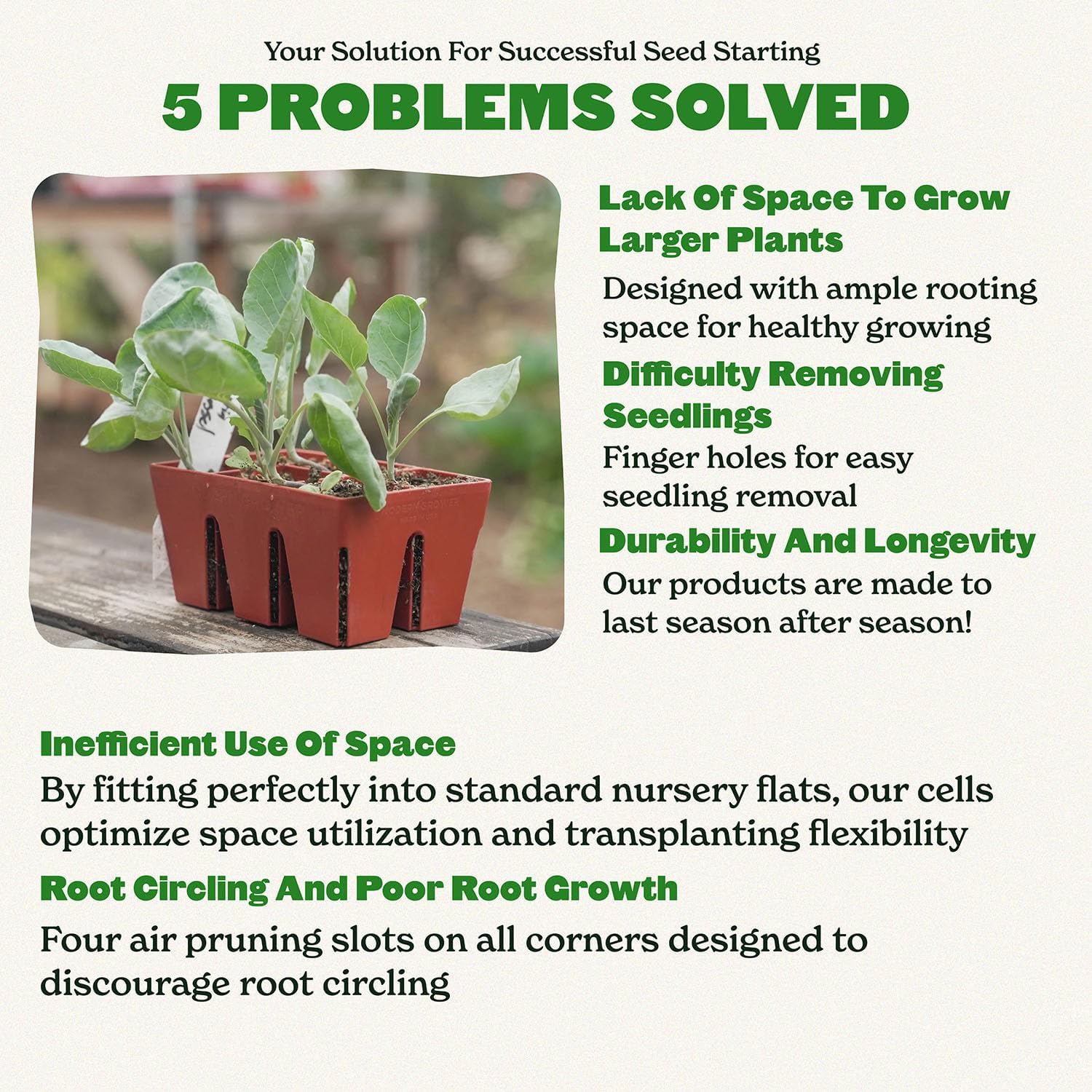 - Unbreakable & Eco-Friendly – 100% Recycled Plastic: Made from 100% recycled, UV-resistant plastic, our 6-cell trays (24-pack) are built for lifetime use. Each cell measures L 1 9/16" x W 1 9/16" x H 2 1/4", ensuring strong, reusable, and sustainable seed-starting.