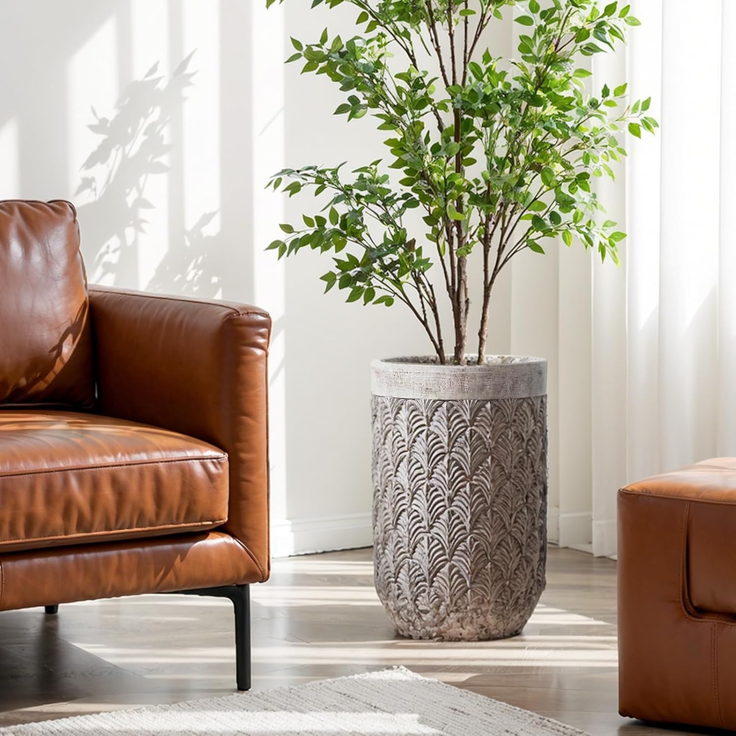 15.5 & 19 inch high Concrete Flower pots Set of 2, The planters for Outdoor Plants with Drainage Hole, Modern Family Outdoor Decor Plant pots, Indoor Plant pots for Home Decor.