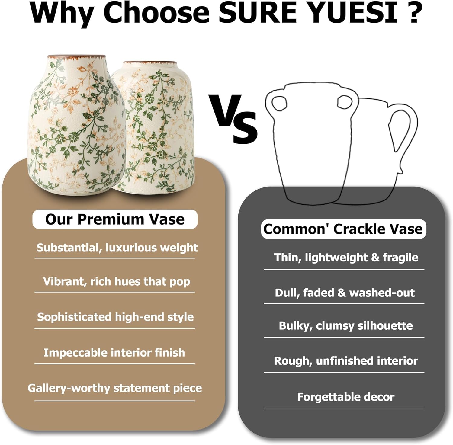 - IDEAL GIFT CHOICE: The SURE YUESI green vase makes a perfect gift for various occasions such as birthdays, holidays, housewarmings, or as a thank you gift. Its timeless design and versatility make it a thoughtful present that will be cherished for years to come.