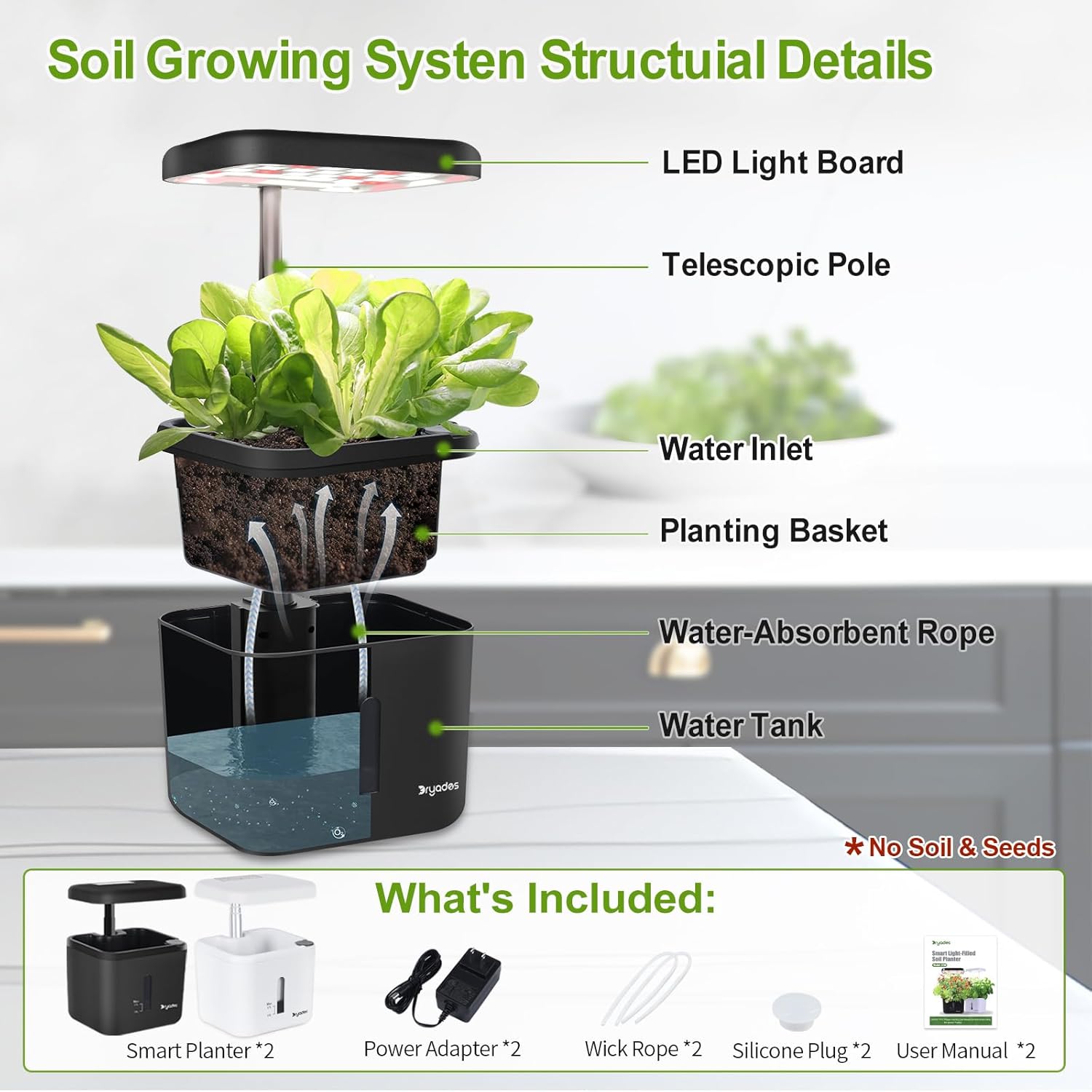 - GROW SYSTEM YOU WANT: Self-Watering Planting System with 17 Watt LED Grow Light Smart Compact Soil Planter, Ideal for beginners and experienced gardeners alike!. The innovative Soil Planter Growing System offers a convenient and efficient way to grow plants indoors. Indoor garden growing system can solve the problem of growing in special environments, such as insufficient light and uncontrollable weather conditions outdoors.