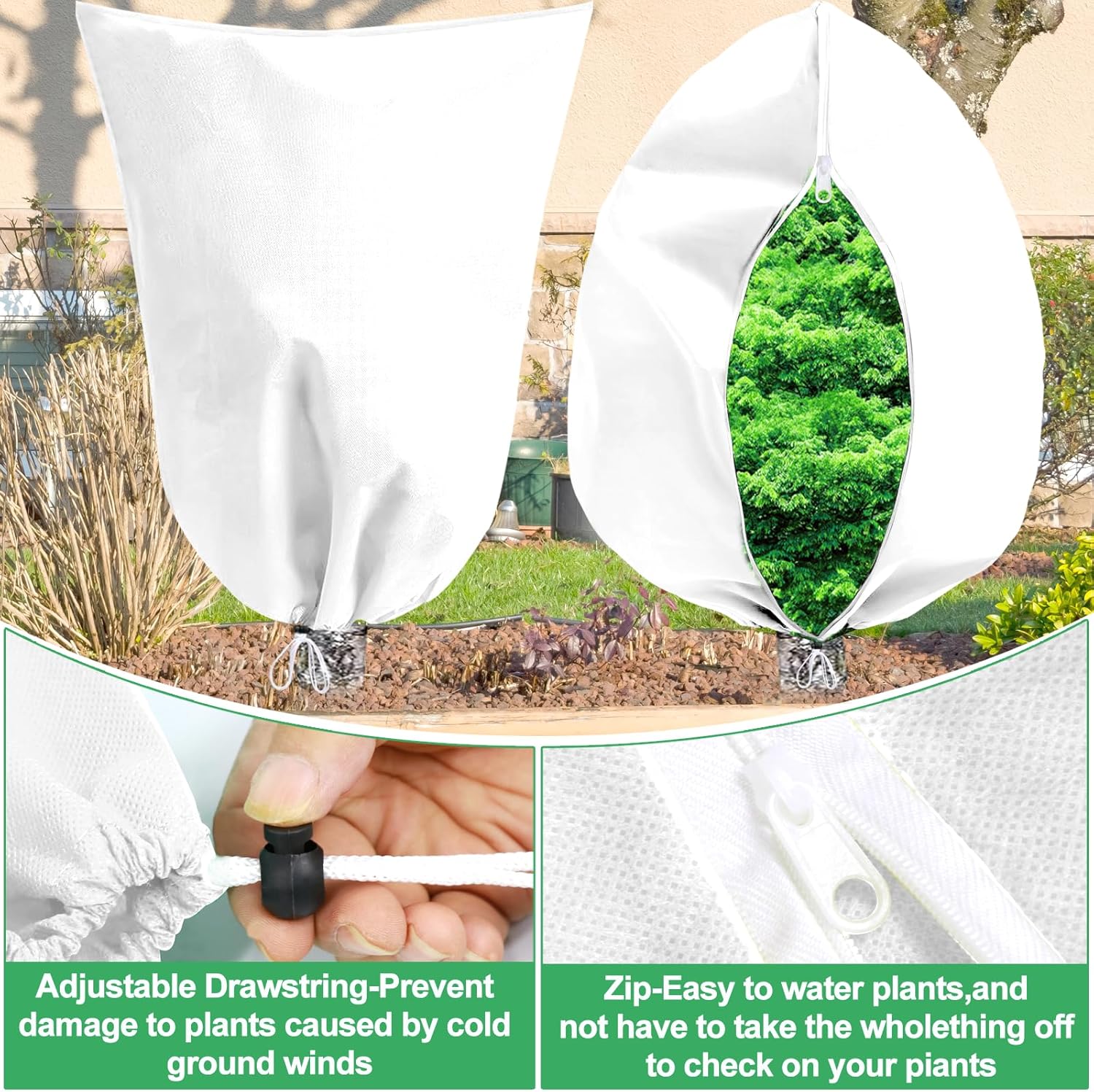 - Frost Cover With Zipper & Drawstring: Zipper design is easy to cover or remove, making it convenient for watering or checking the condition of plants. Adjustable drawstring to prevent damage to plants from cold ground winds.
