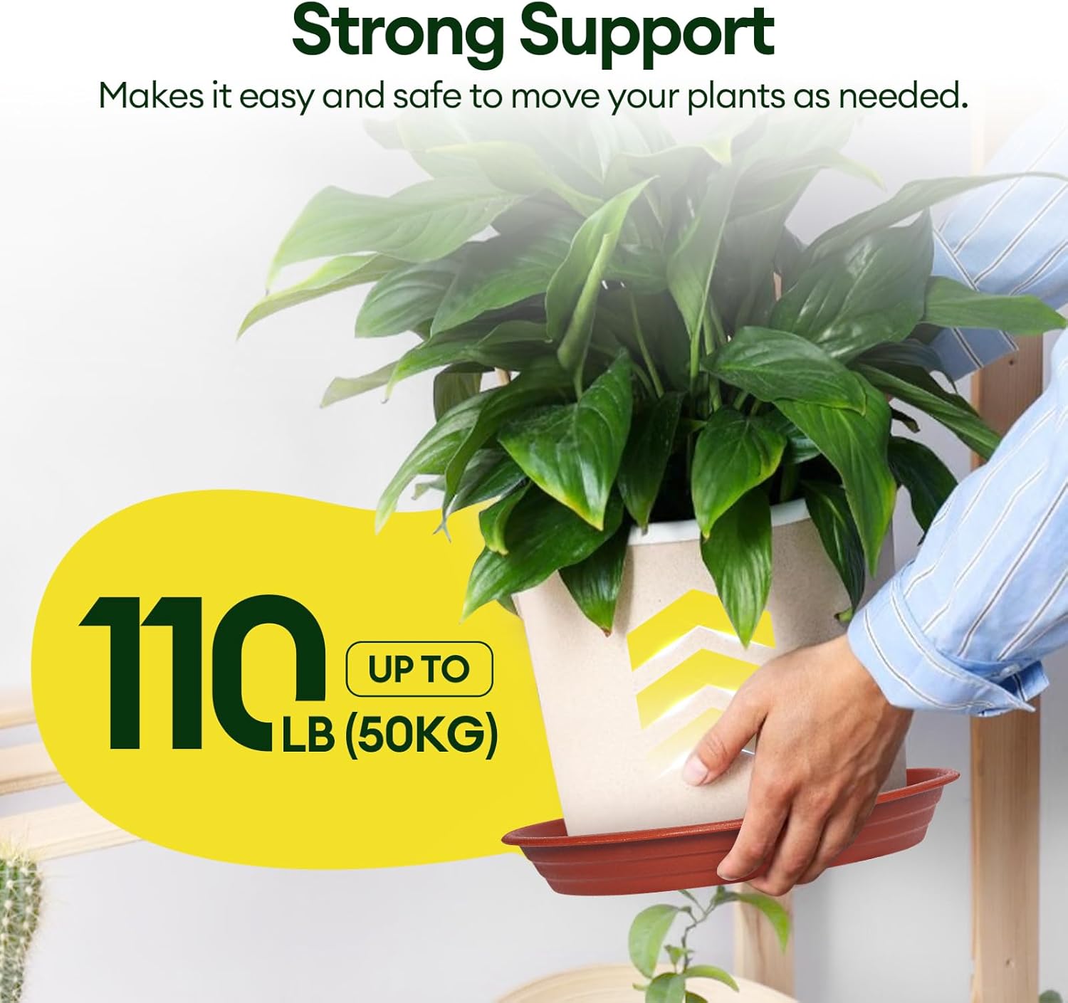- Strong Support: Each heavy-duty tray supports up to 110 lb (50 kg), offering reliable support for heavy planters; It acts as a steady base for your potted plants, making them easy and safe to move when needed