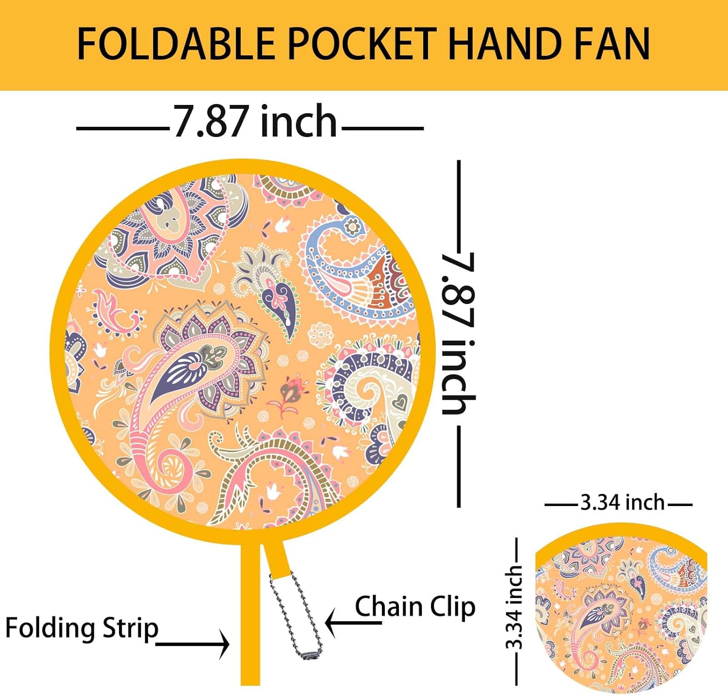 - 【Pocket Fan】Unfold into a 7.8 inch circle and refold to just 2.8 inch, so easy to keep on you be it in your pocket or purse