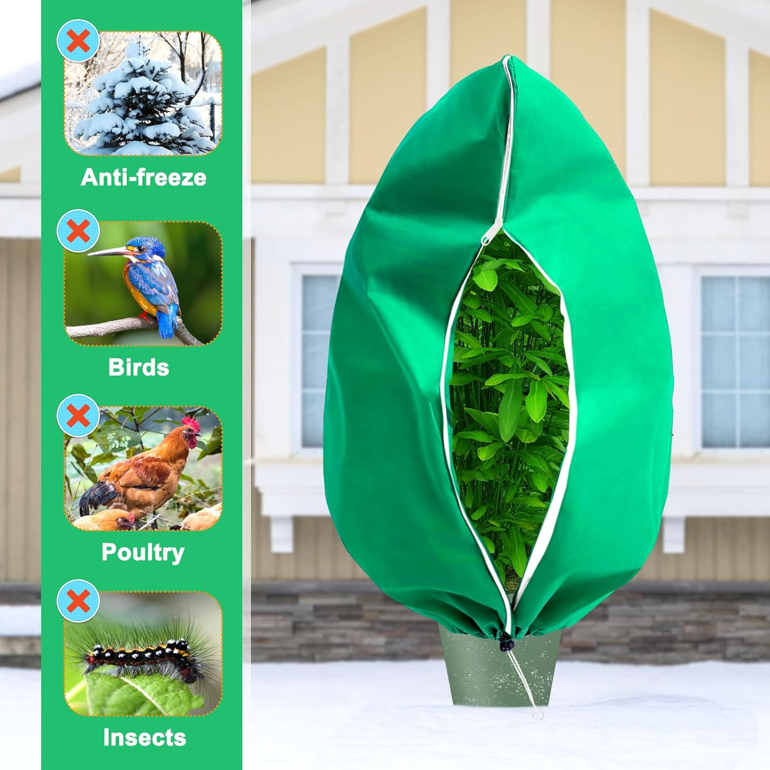 - Wide Applications: Frost coverings for outdoor plants are an ideal choice for winter protection, such as bucket pots, saplings, and small to medium-sized potted plants, most fruit trees, tomato plants, shrubs, etc. If you have any questions or are not satisfied with our tree cover, please feel free to let us know.