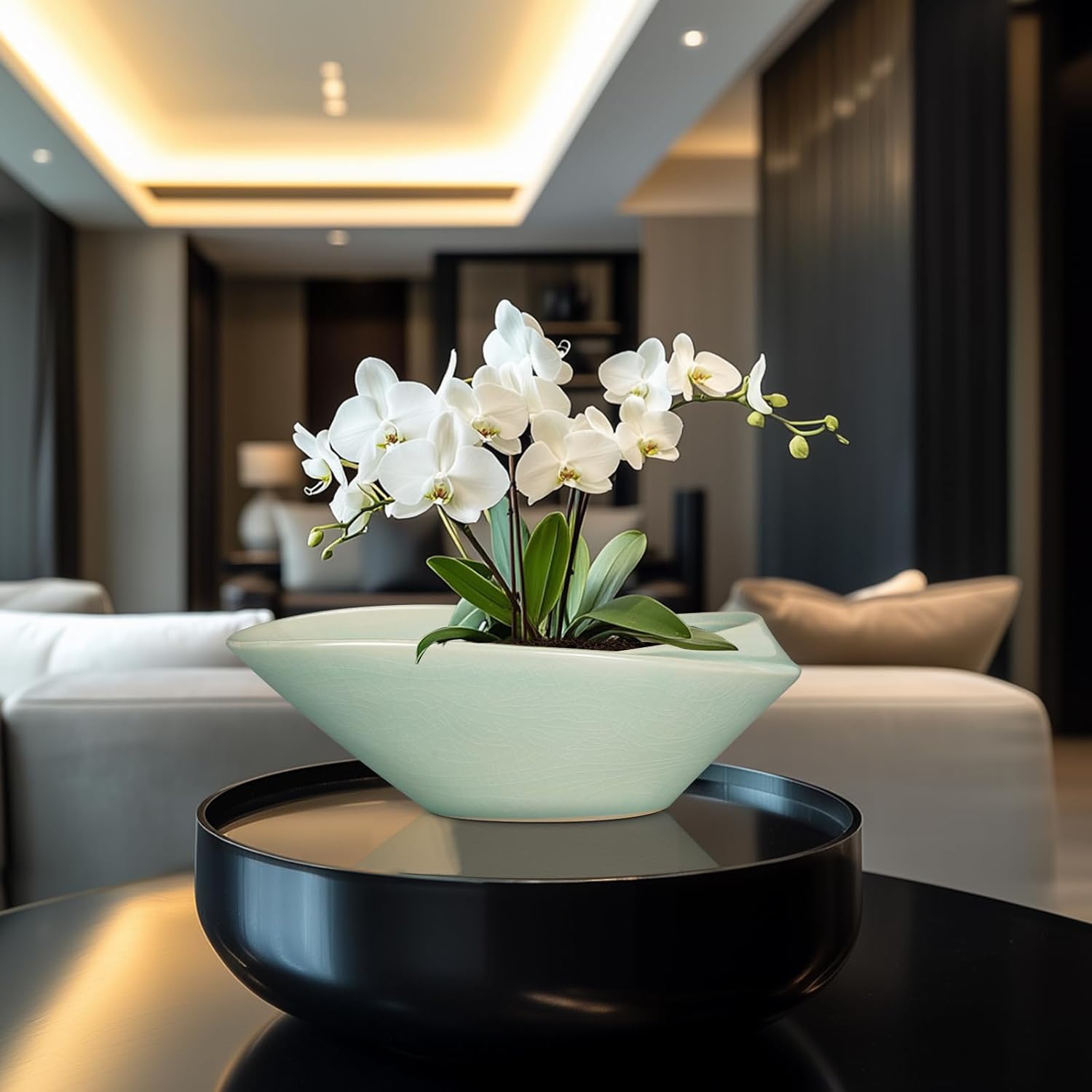 - 12 Inch Pots for Plants for Home Decor: The modern style large light gray bonsai pot for plants that can be placed on a table, living room, balcony, patio, garden, and other places