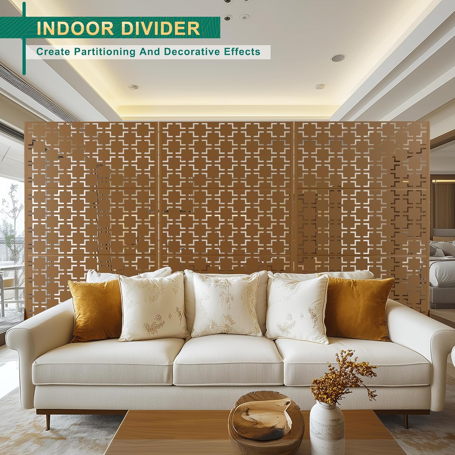 - Functional Decor: Beyond its primary function as a privacy barrier, this outdoor screen serves as an artistic decorative element. The intricate and elegant design elevates the visual appeal of your outdoor decor, turning an ordinary space into a chic and inviting retreat. Its aesthetic versatility makes it a perfect addition to any outdoor setting, where it can complement a variety of styles and themes.