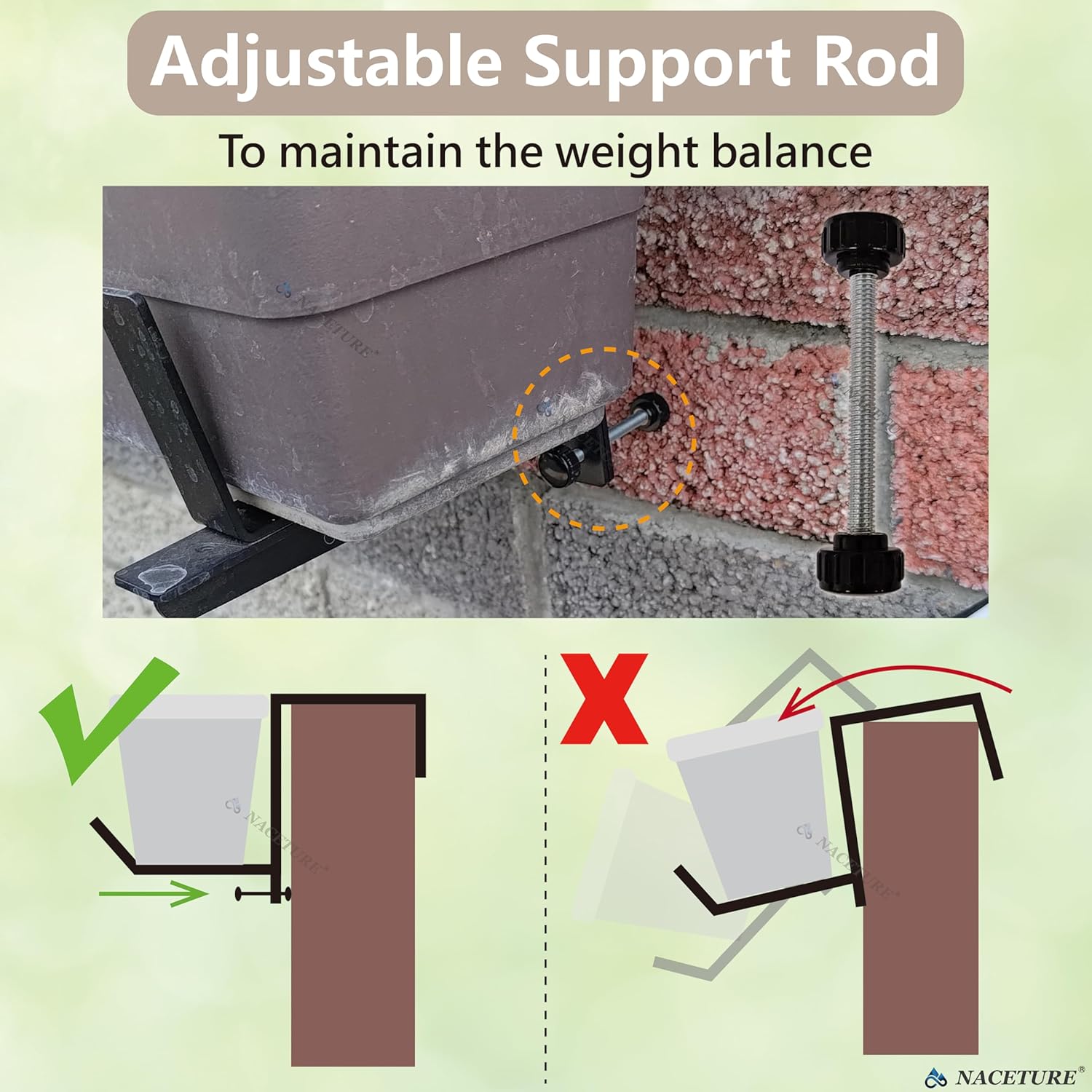 - ⚙️ ADJUSTABLE DESIGN - The innovative design allows the top width to be adjusted to fit railings between 1.2 to 7.7 inches, while the base width adjusts from 5.9 to 10.2 inches. This versatile feature makes these window planter brackets suitable for a wide range of pot sizes and railing types, ensuring a snug fit every time!