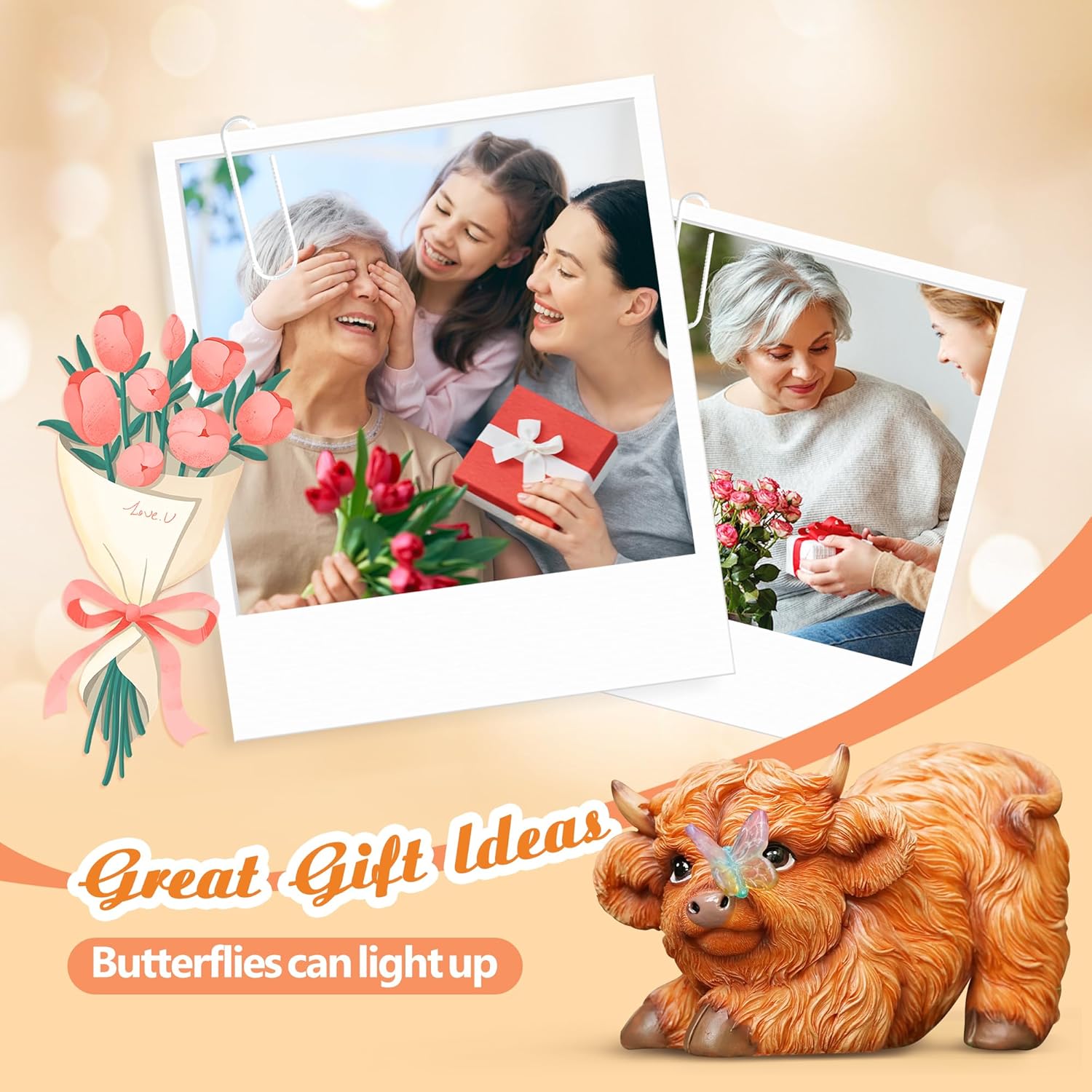 • Are you looking for a unique gift? This resin solar light statue is a good choice. It is practical and beautiful and can be used as a gift for birthdays, holidays, housewarming or any special occasion (grandpa, grandma, dad, mom). This one-of-a-kind outdoor decoration will amaze your family.