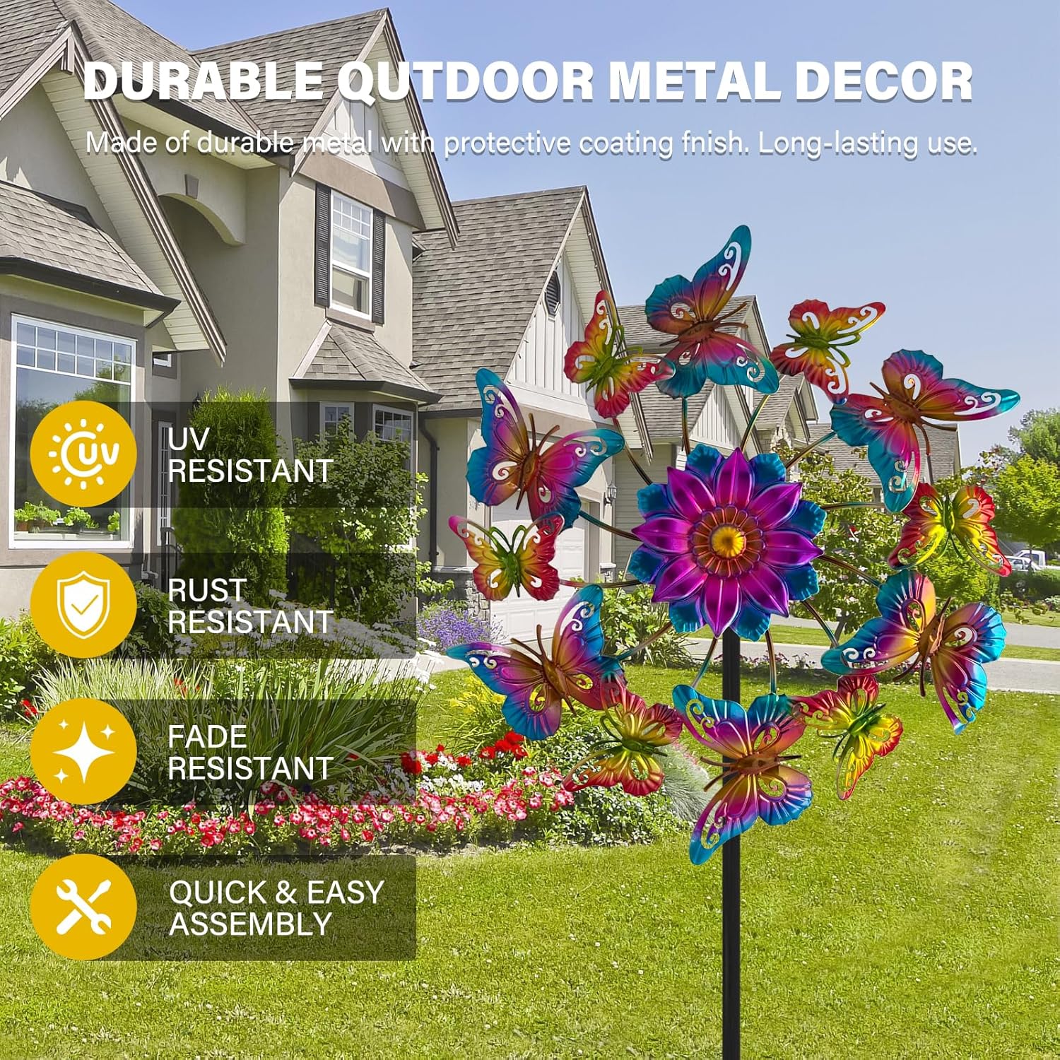 45" Butterfly Garden Wind Spinners for Yard, 12pcs Colorful Butterflies Kinetic Outdoor Decor, Wind Sculpture Yard Art Decorations for Patio, Lawn