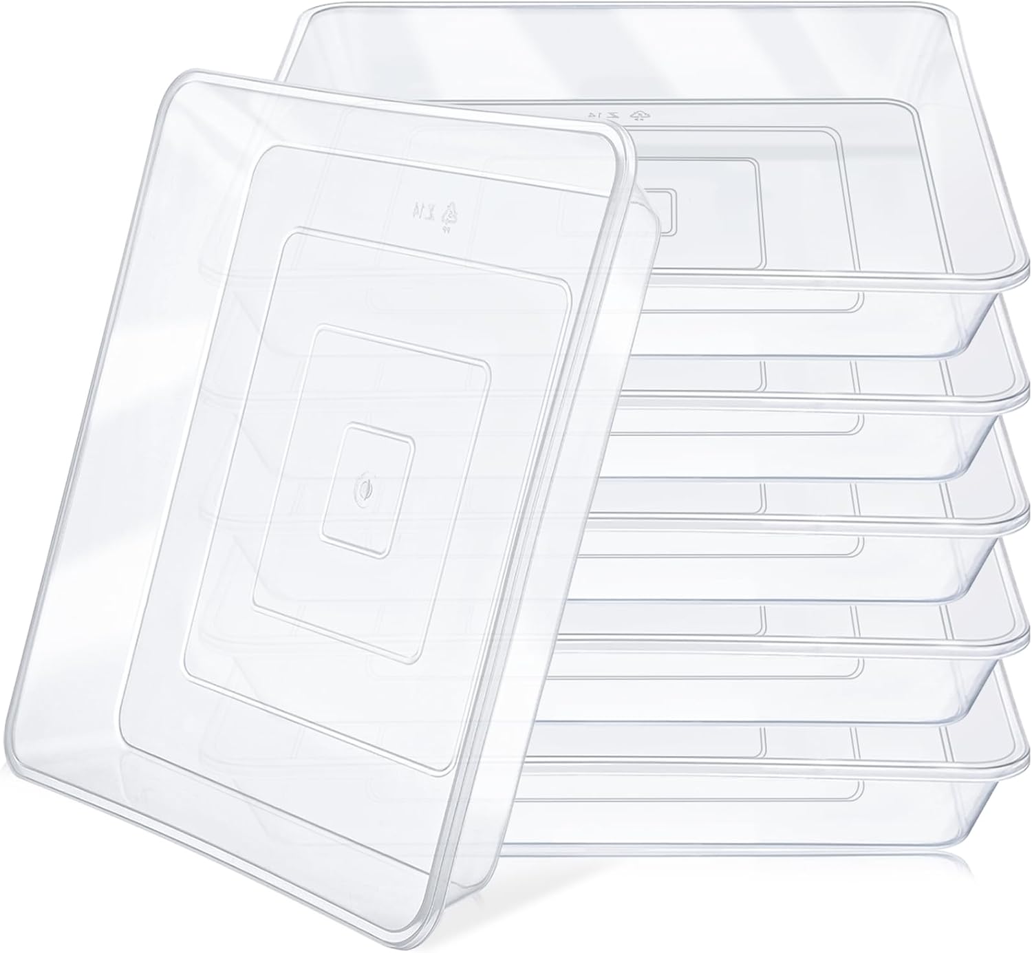 GREANER 14 Inch of Plastic Plant Saucer, 6 PCS Durable Plant Trays for Indoors, Square Plant Water Dray Tray, Plant Water Catcher Drip Dishes, Clear Drip Trays for Indoors & Outdoor Plants