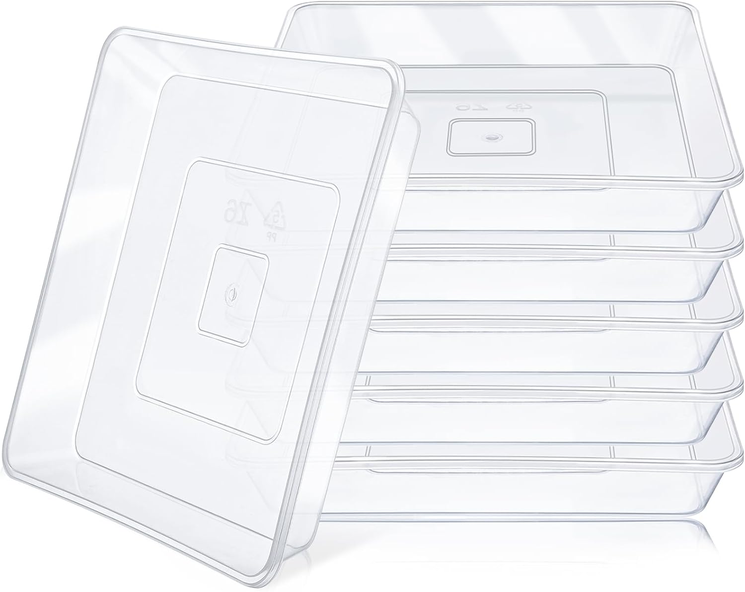 GREANER 6 Inch Square Plant Saucer, 6 PCS Plastic Tray for Indoors, Durable Thick Flower Pot Plant Drip No Holes, Clear Plant Water Catcher Tray for Indoor Outdoor Planter
