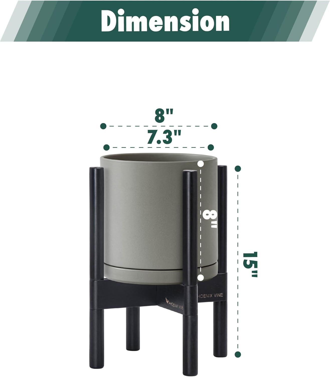 - 8 Inch Pot with Stand Set: Planter size: 8"Diameter x 8"H; pot with stand total height: 15 inch.