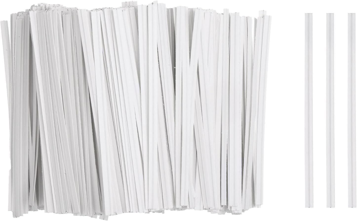 HARFINGTON 1000pcs Bag Twist Ties 3.5" Reusable Kraft Paper Twist Ties Wire Cable Ties for Party Bread Candy Cake, White