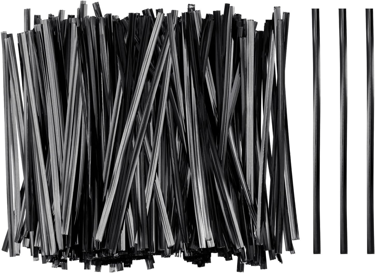 HARFINGTON 800pcs Bag Twist Ties 4.7" Reusable Plastic Metallic Twist Ties Wire Cable Ties for Party Bread Candy Cake, Black