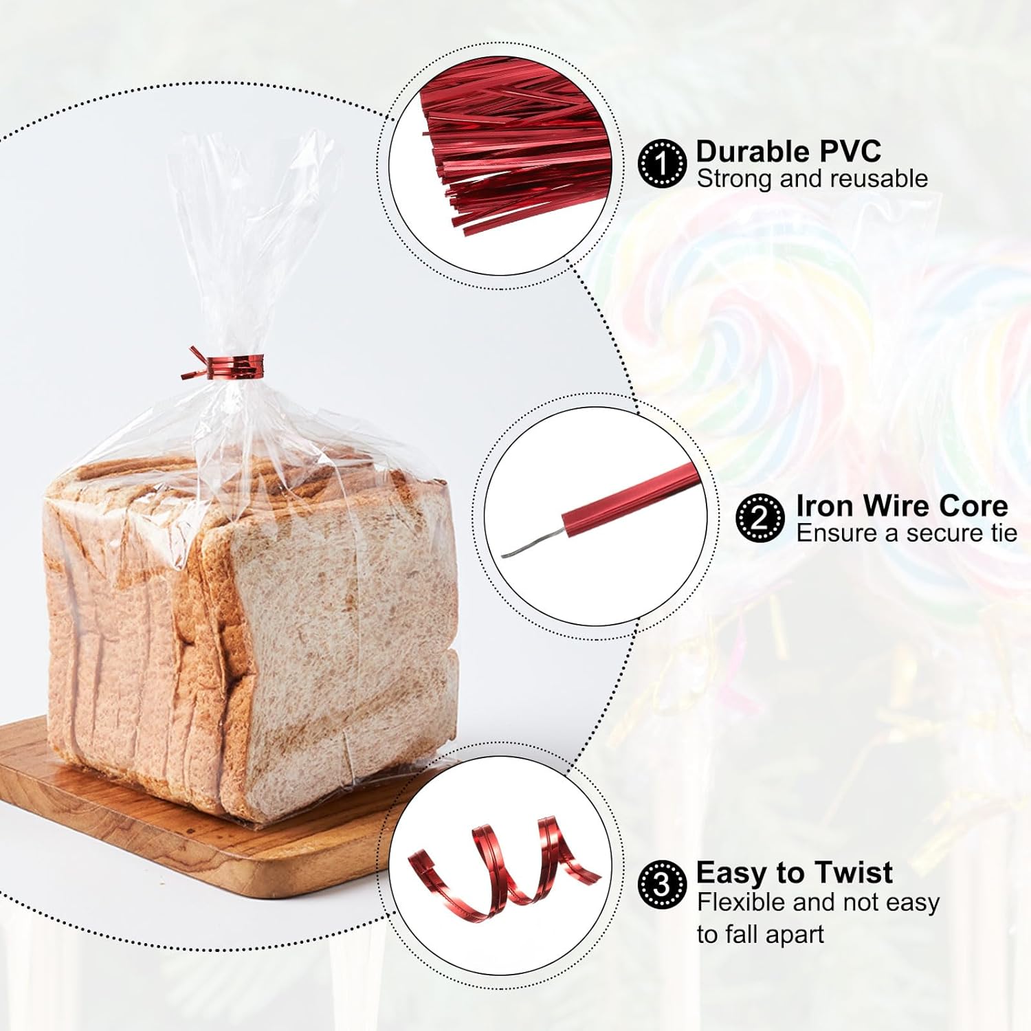 HARFINGTON 800pcs Bag Twist Ties 4" Reusable Plastic Metallic Twist Ties Wire Cable Ties for Party Bread Candy Cake, Red