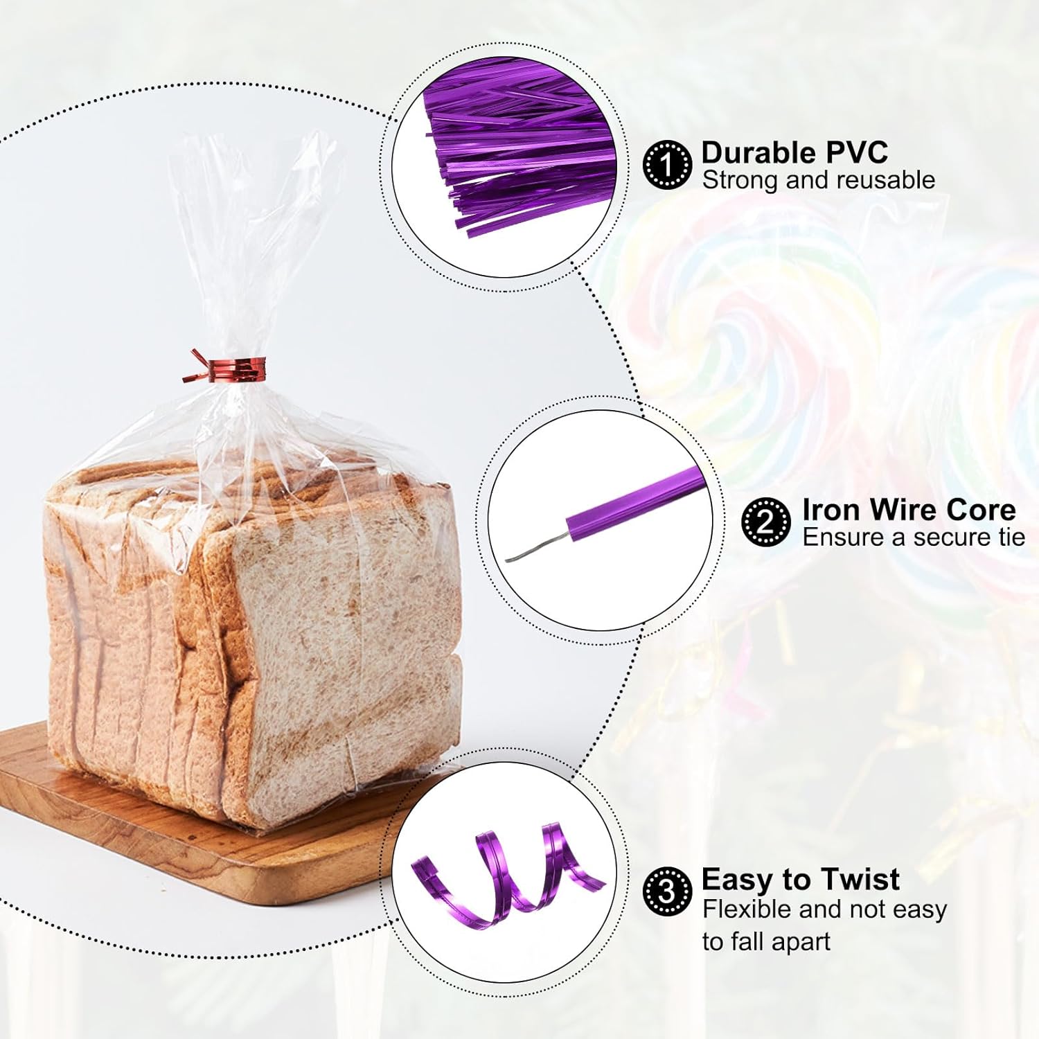 HARFINGTON 800pcs Bag Twist Ties 6" Reusable Plastic Metallic Twist Ties Wire Cable Ties for Party Bread Candy Cake, Purple