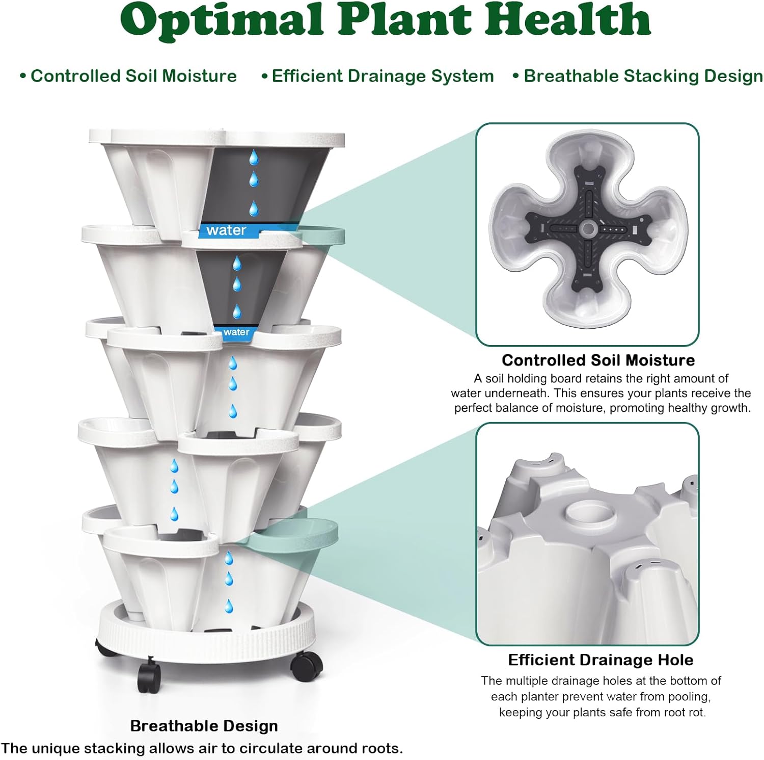 - Planting Versatility & All-Around Use - Enjoy a wide range of planting options with these stacking planters, as each tier can host up to four different plants, from strawberries to flowers. And with their indoor-outdoor versatility, you can transform any living space or patio into a beautiful, blooming oasis.