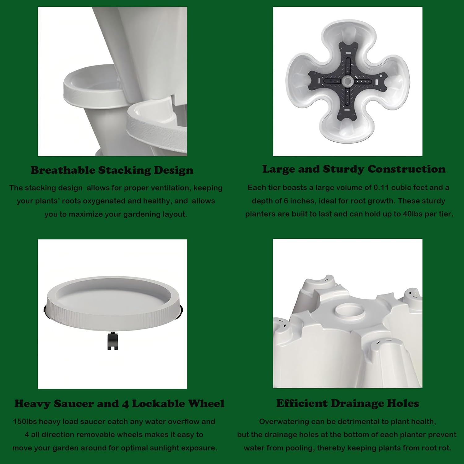 - Planting Versatility & All-Around Use - Enjoy a wide range of planting options with these stacking planters, as each tier can host up to four different plants, from strawberries to flowers. And with their indoor-outdoor versatility, you can transform any living space or patio into a beautiful, blooming oasis.