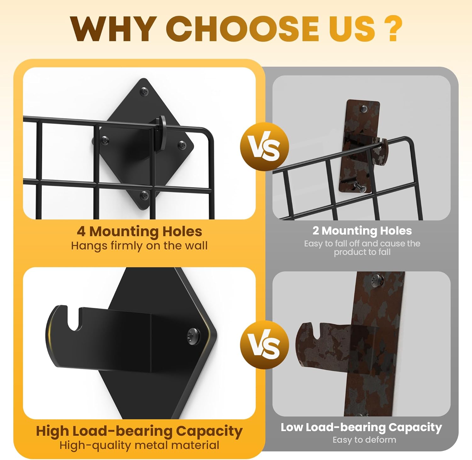 - 【High Quality Materia】l: This gridwall accessory is made of high-quality metal, sturdy and durable, the surface of hooks for grid wall panel has black powder coating, corrosion-resistant, anti-oxidation, not easy to bend or deform, long service life. Grid wall accessory can perfectly support your grid wall, slat net and wire grid panel