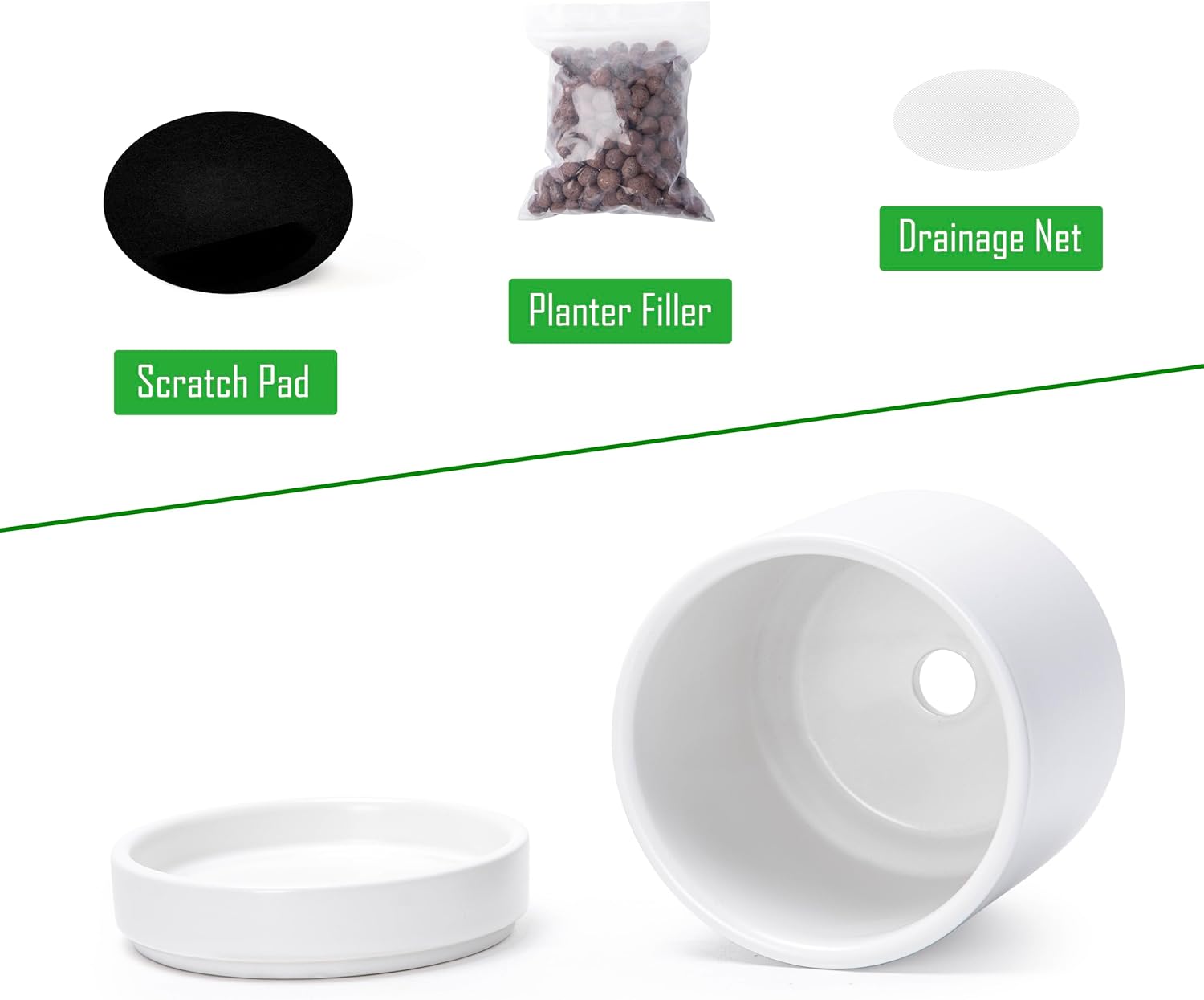 - Drainage holes and detachable/perfectly fitting ceramic saucers included.