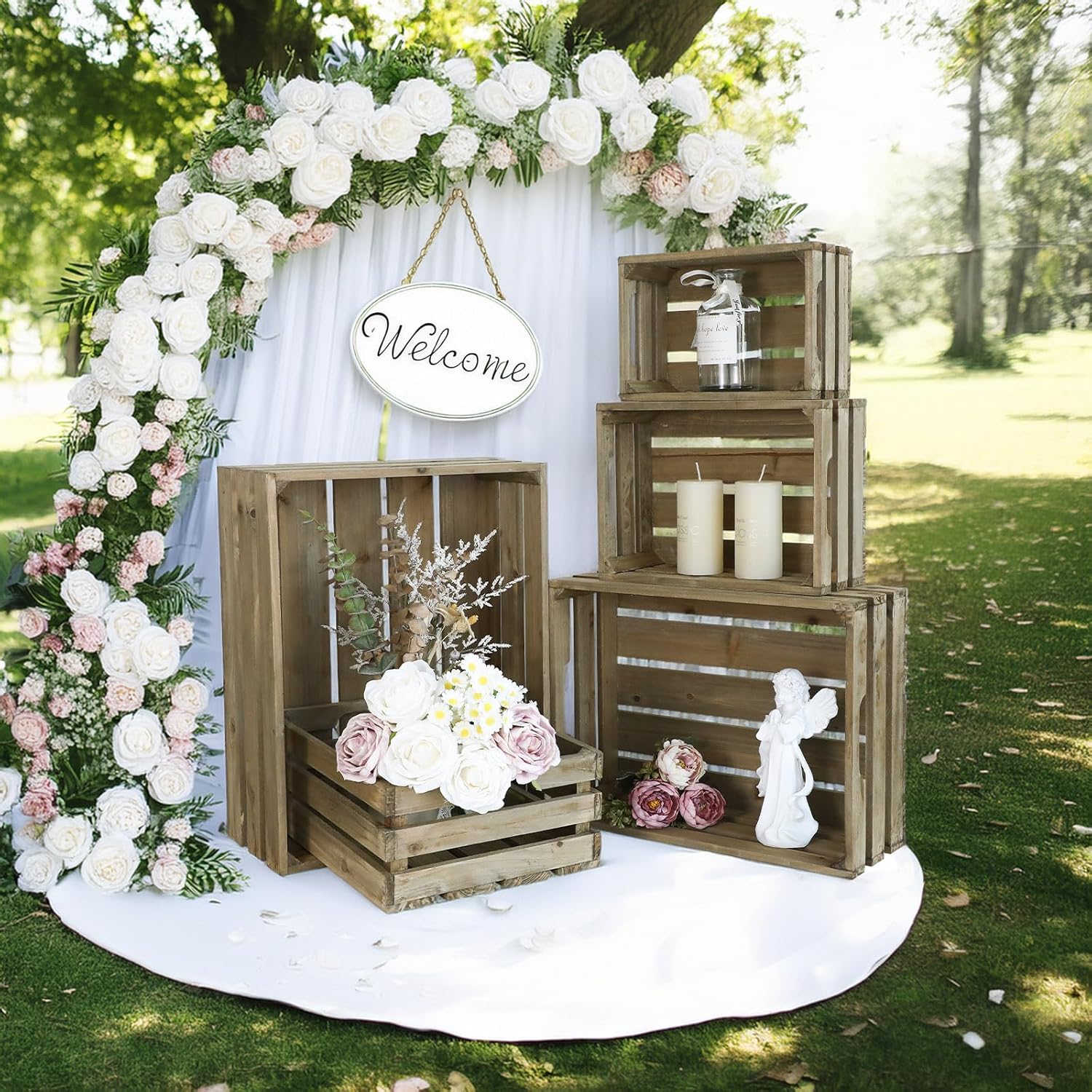 - FARMHOUSE STYLE WITH PREMIUM WOOD: Crafted from high-quality wood with a charming farmhouse design, these farmhouse wooden crate bring rustic warmth and natural beauty to any room, enhancing your home’s decor