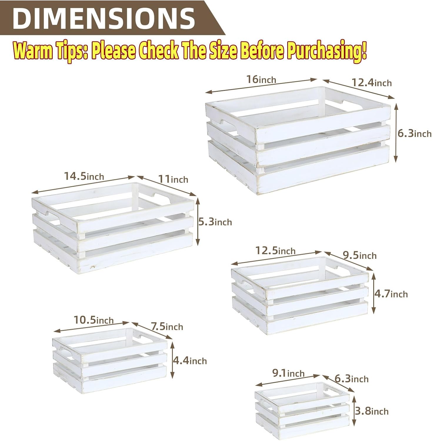 5-Piece Farmhouse Wooden Crate Set - Rustic Wooden Crates for Display and Storage, Large Whitewashed Decorative Crates, Farmhouse Apple Crates, Painted Wood Crates for Decor