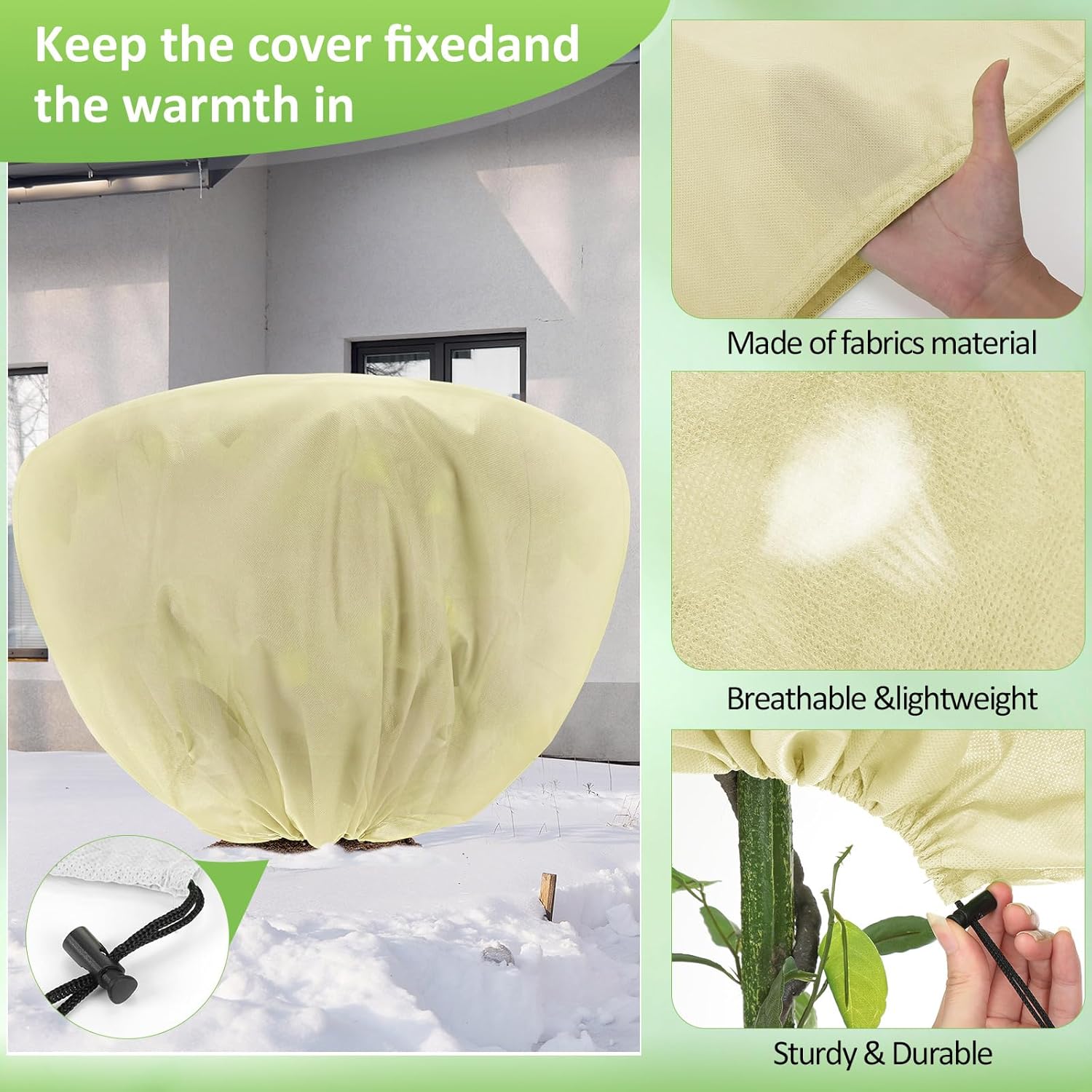 - Drawstring Design: the opening of frost protection covers for plants is designed with a drawstring, which can be easily fixed and removed by simply pulling the drawstring, and will not be easily blown away by the wind, allowing you to cover plants more easily and quickly in bad weather, stable and convenient