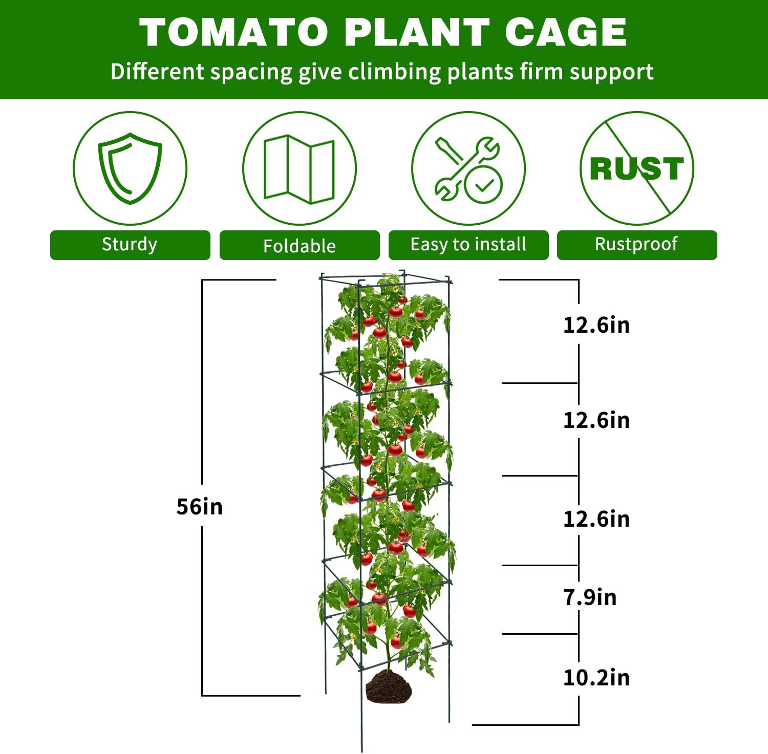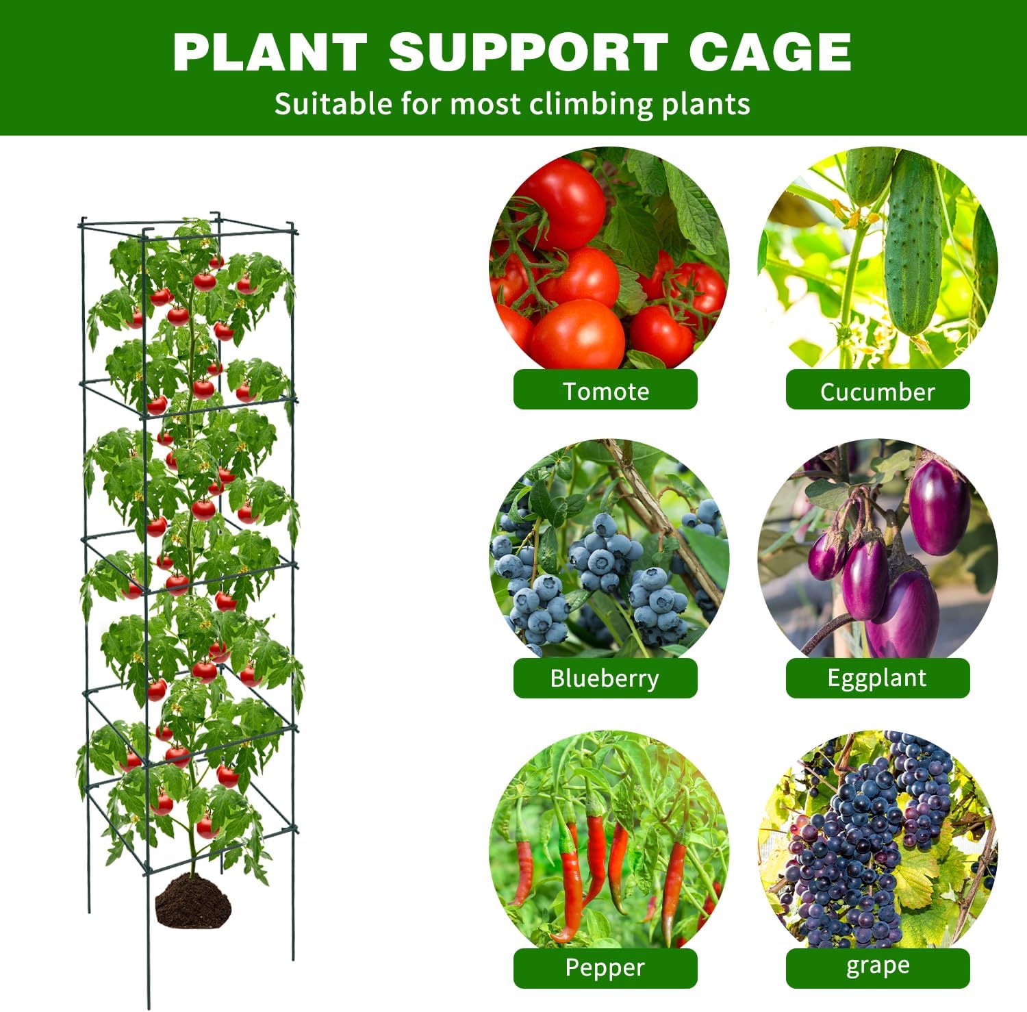 - Easy Setup: Setting up our tomato cages for garden is a breeze! No tools needed, just snap the wire into the corresponding hook, opening the square frame, then insert the 4 steel stakes into soil surrounding the tomato tree or other plants that need support protection.