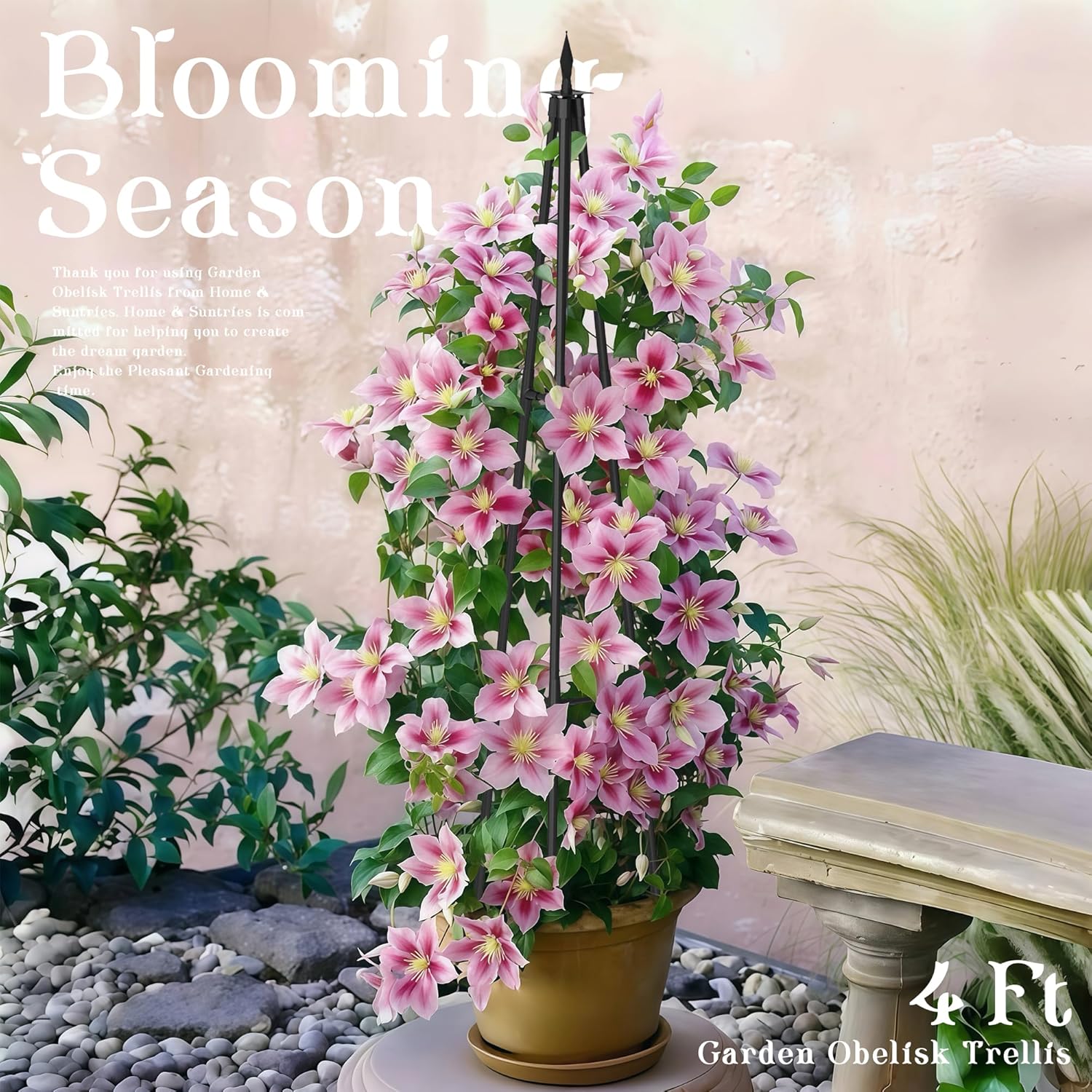 4FT Obelisk Trellis for Climbing Plants Outdoor, 16mm Rust-Proof Extra Thickened Plastic-Coated Metal Pipes, Indoor Climbing Support for Potted Plants, Vines, Flowers Stands,Black