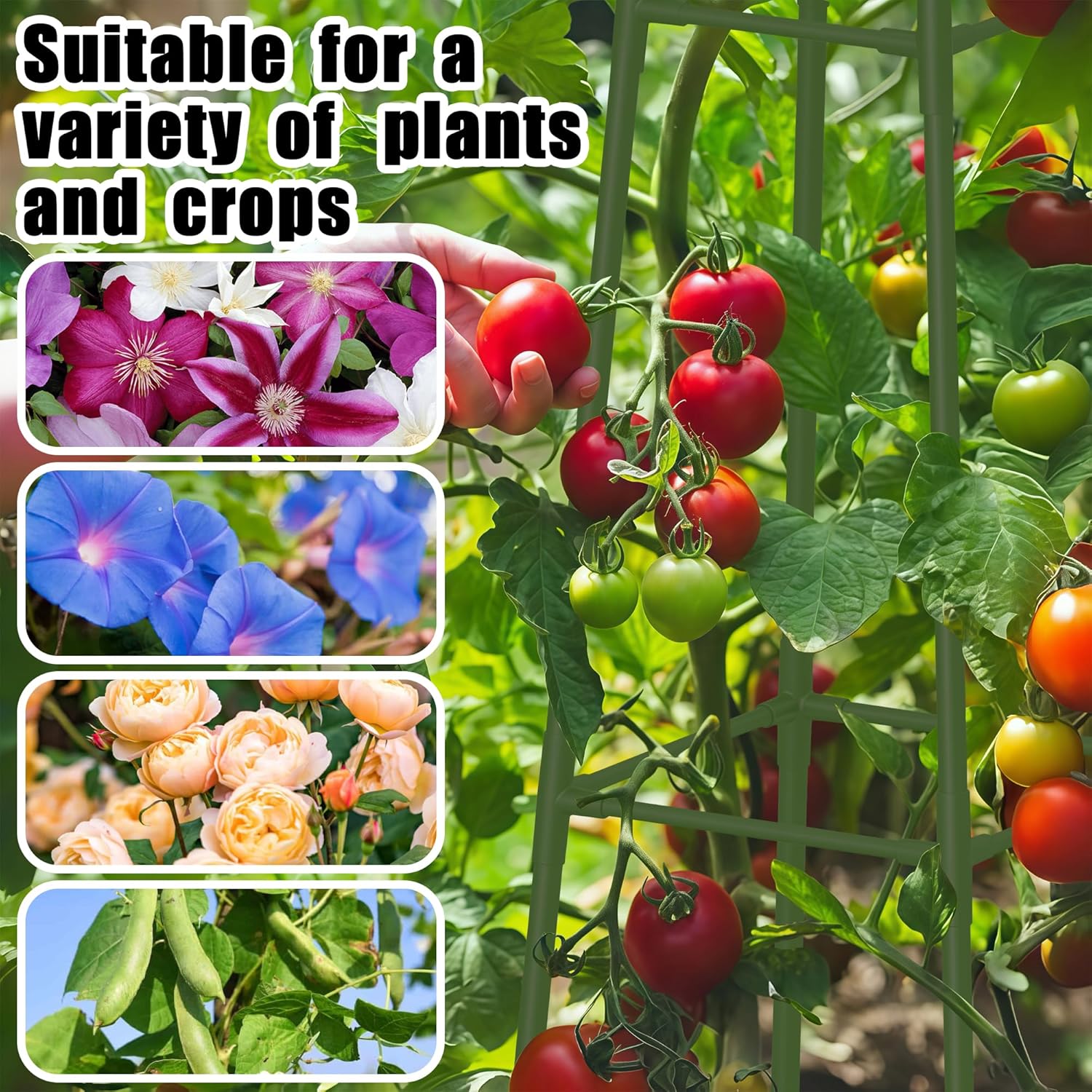 - Support for Climbing Plants: Perfect for supporting vines, tomatoes, cucumbers, and other climbing plants.
