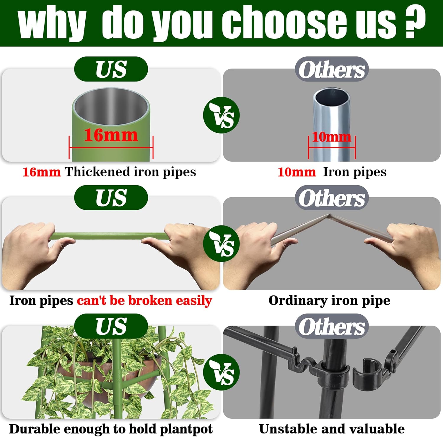 - New Cross-bar design: Compare to other Snap - on plastic bars our trellis uses plastic- coated metal bars, it makes the trellis sturdier, easier to assemble and hold vines also holds more weight