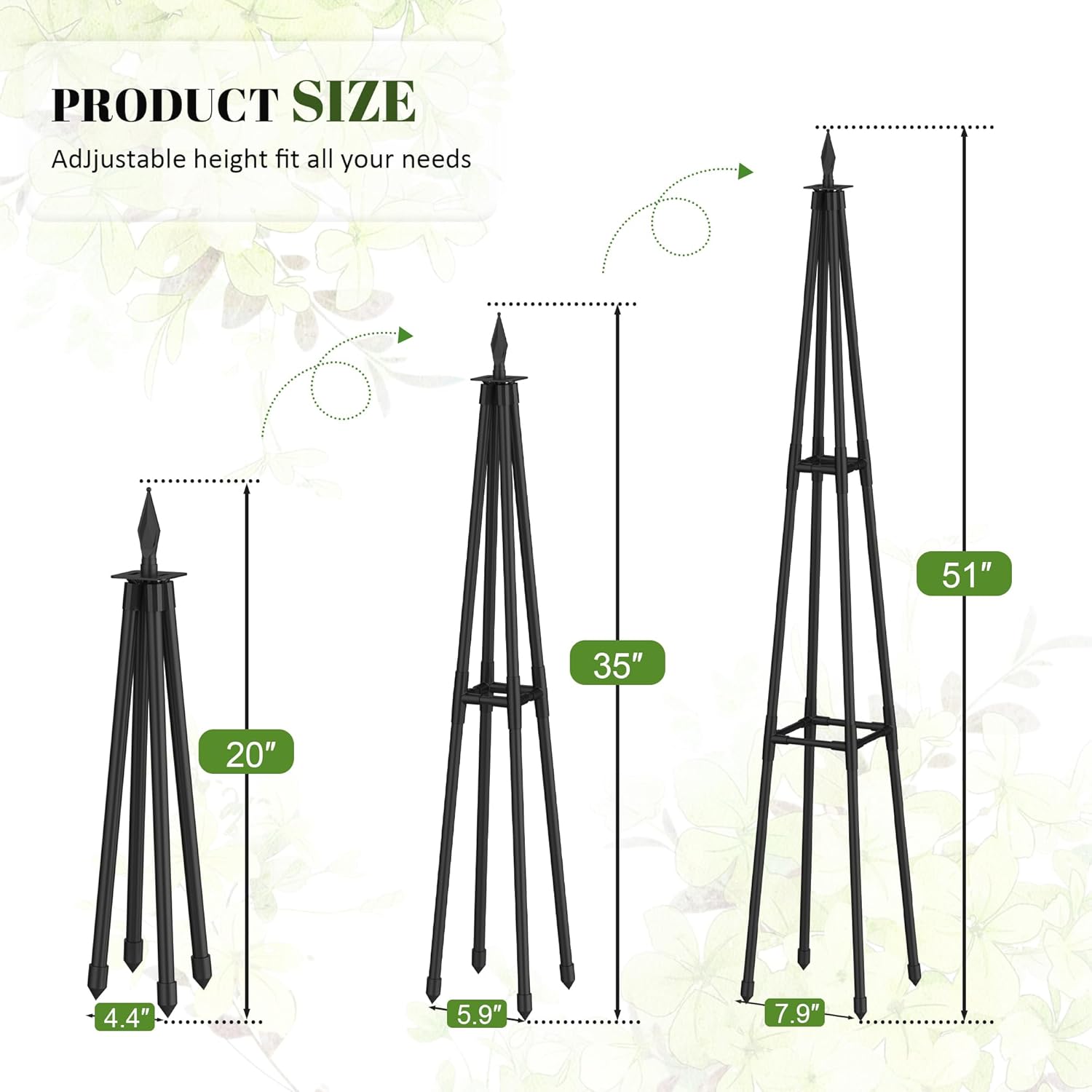 - Supports Heavy Climbers & Vining Plants :Obelisk trellis can handle the weight of vigorous climbers like roses, clematis, beans, or cucumbers, preventing plants from sprawling on the ground.