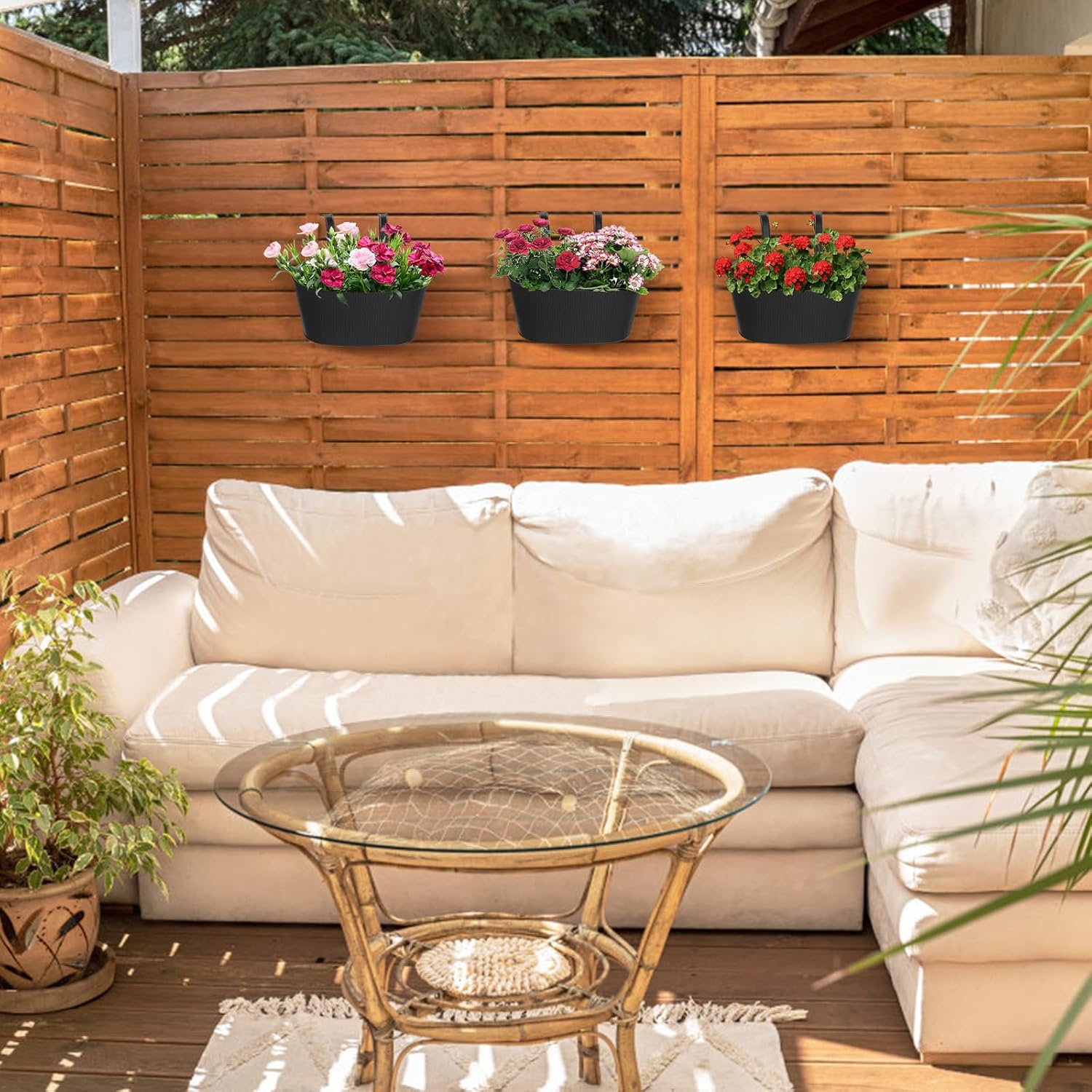 - Detachable Hooks and Drain Holes: Balcony rail planter comes with detachable hooks to attach to the fence or wherever you want to put. You can remove the hooks and they become regular planters. Design with drainage holes at the bottom. This feature guarantees that your plants won't be overwatered, promoting their health and longevity.