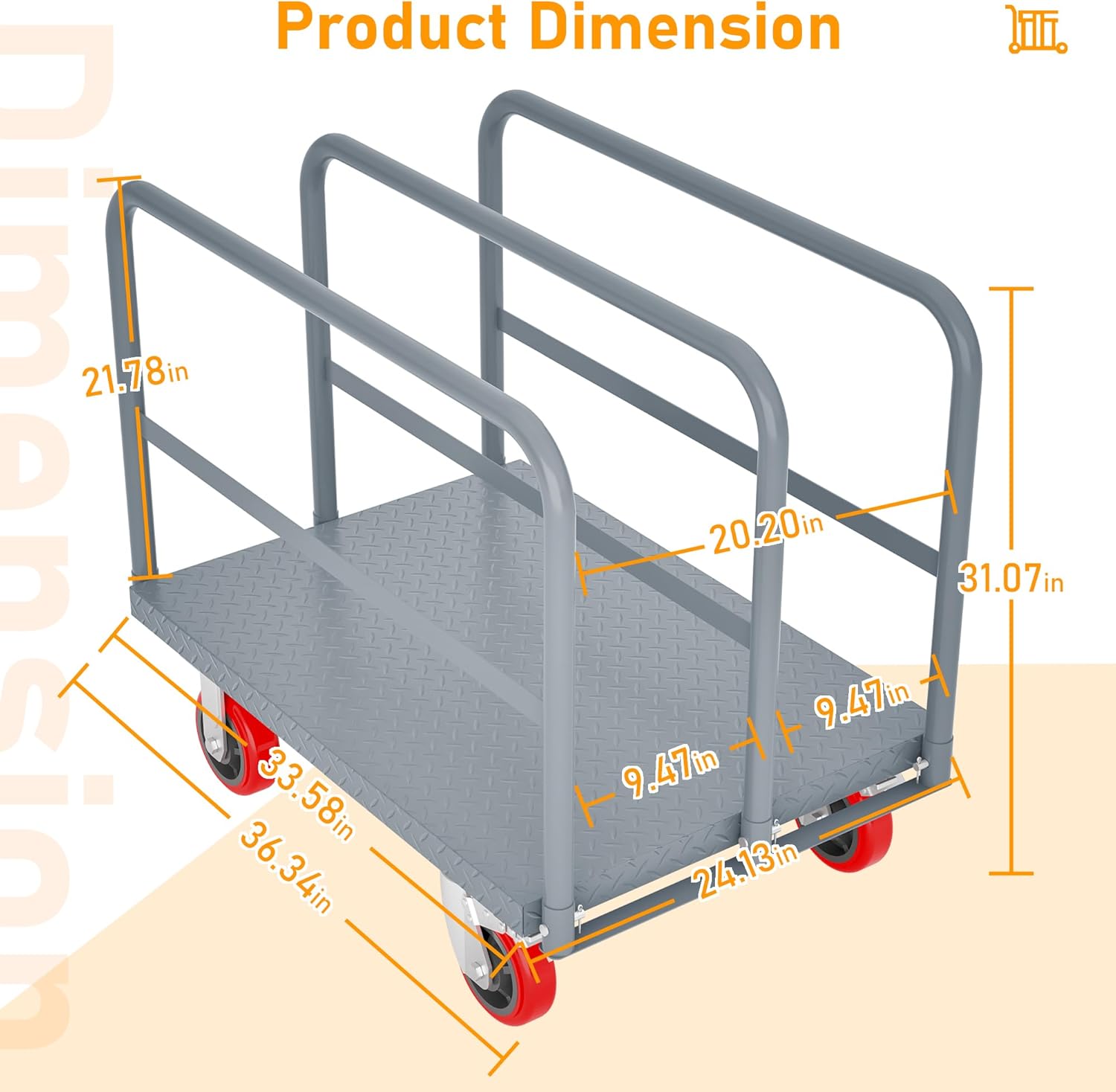 - INNOVATIVE DESIGN : This Drywall cart has a 2in1 design. You can use the front armrest as a heavy-duty platform truck. It also has 2 side handrails, which you can use as a panel cart to transport other heavy objects such as gypsum boards, wall panels, wood, etc.