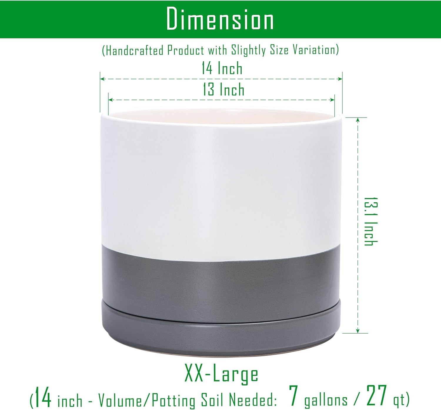 - XXLarge 14 Inch Planter Pot: 14" Diameter x 13.1" H, white & speckled grey color.