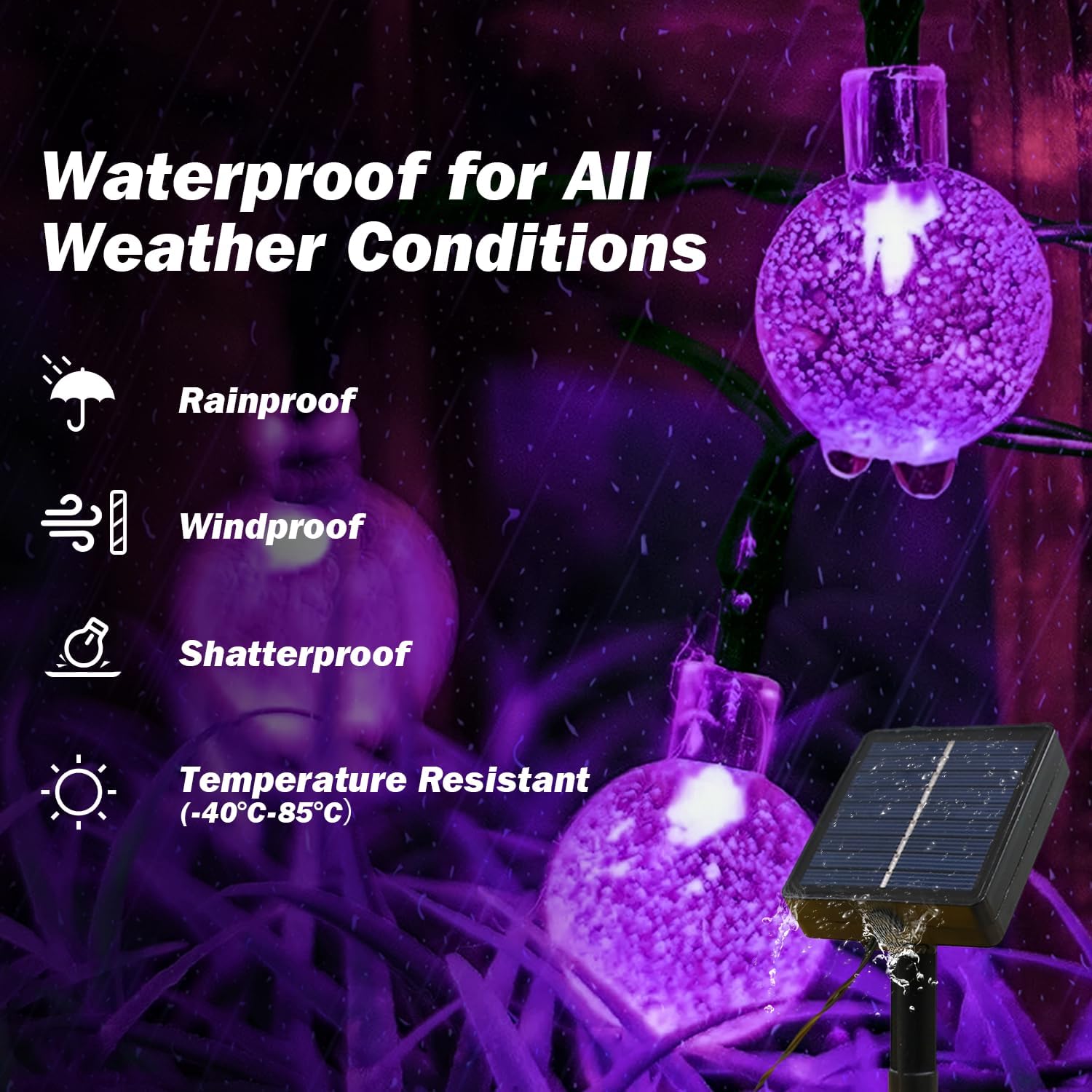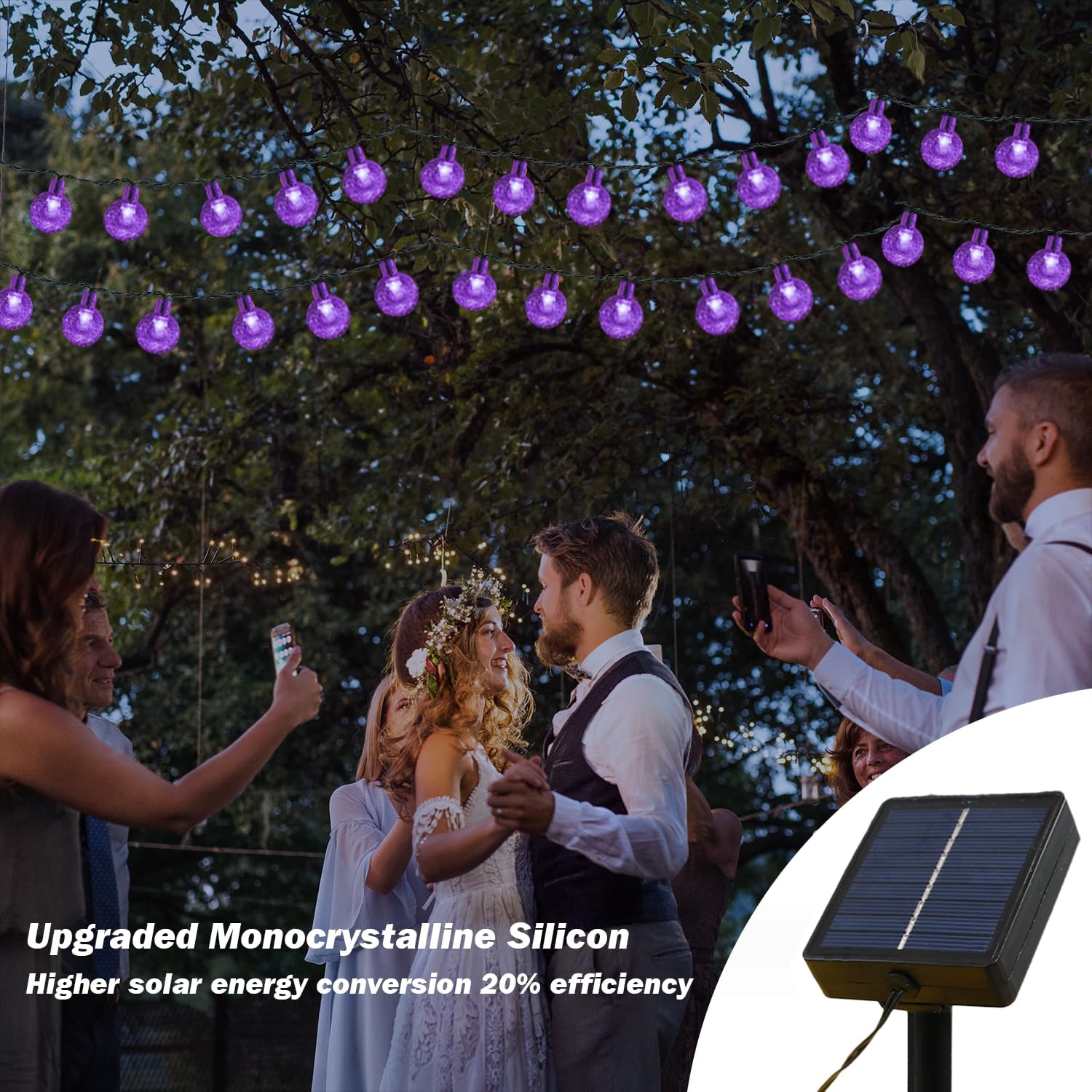 Solar Lights Outdoor Waterproof, 2 Pack Total 200LED 110FT Solar String Lights for Outside with 8 Modes, Outdoor String Lights Crystal Globe Patio Lights for Garden Yard Party Decor(Purple)