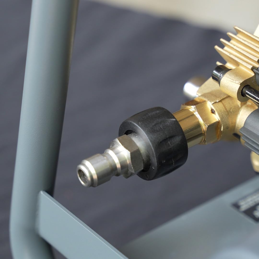 - 【 Heavy-Duty 304 Stainless Steel Construction】 Crafted from fully machined 304 stainless steel, this pressure washer quick connect kit delivers outstanding durability and corrosion resistance. Built to handle the harsh conditions of high-pressure washing, it ensures reliable, long-lasting performance for both residential and commercial use. Perfect as a part of your pressure washer accessories, it includes M22 14mm quick connect hose fittings for secure connections.