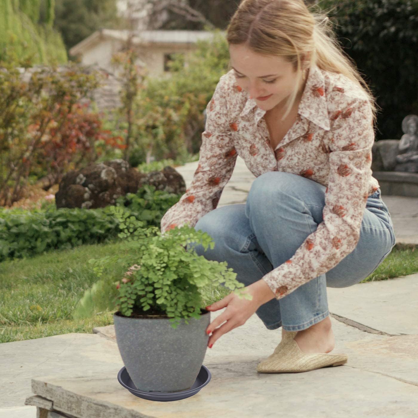 6 Pack Plant Saucer Drip Tray 11 12 inch, Pot Base for Plants Indoor, Plastic Flower Planter Saucers and Drip Trays for Outdoors, Heavy Durable Plant Plate Water Catcher (12", Dark Gray)