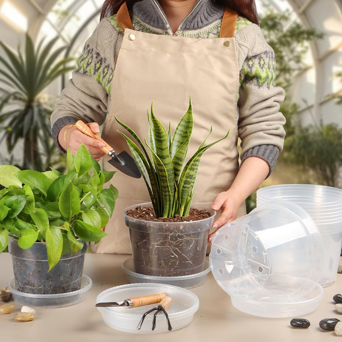- Great for Home Gardener: You will get 12 pack 7 inch pots, and matching 12 pack plant saucer. Clear pots are great for repotting plants for using indoor or outdoor garden. Clear nursery pots can be adapted to the growth of different plants, from seed starter pots to large plant nursery pots, you can witness the growth of plants.