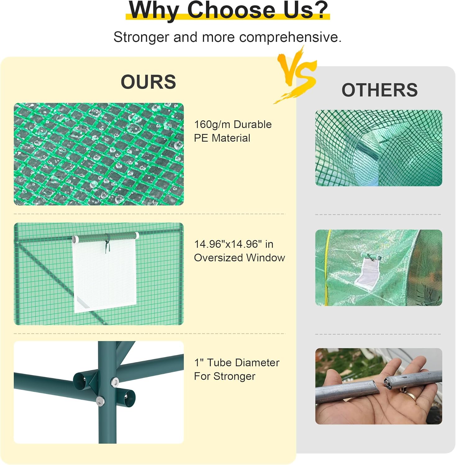 - 【Protect Plants From Frost】Our high tunnel greenhouse for outdoors features an extended base cover.Place stones or soil on top to ensure a secure seal.It extends the growing season for both small and large plants.The greenhouse can be placed in gardens,backyards, courtyards,outdoors or anywhere.