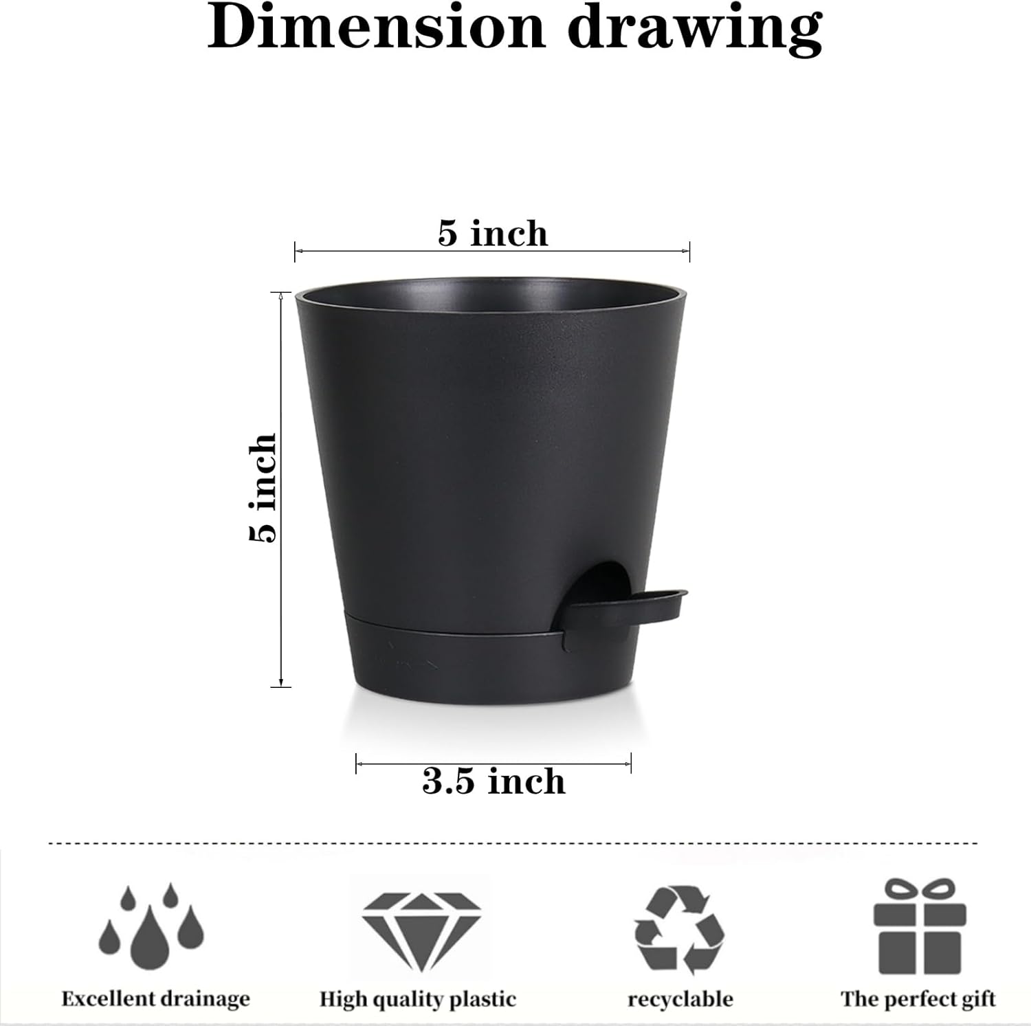 5 Pack 5 inch Self-Watering Pots, African Violets Planter with Drainage Holes and Reservoir, Black Plastic Planter for Indoor Outdoor Plants Flowers and Houseplants Black, 5 inch 5 pcs
