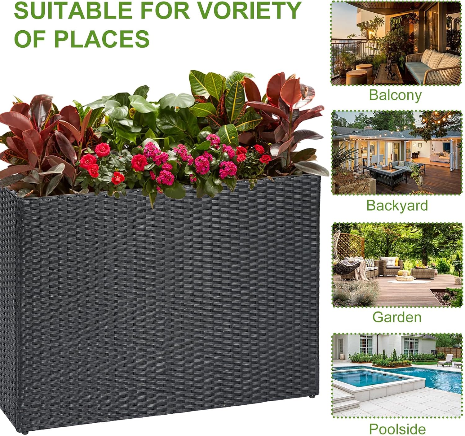 - Rattan Design: Featuring a long bed space, the impressive rattan-like appearance of this modern planter gives you plenty of space to create the visuals you've dreamed of. It looks with natural, handcrafted warmth. Break it down for easy storage