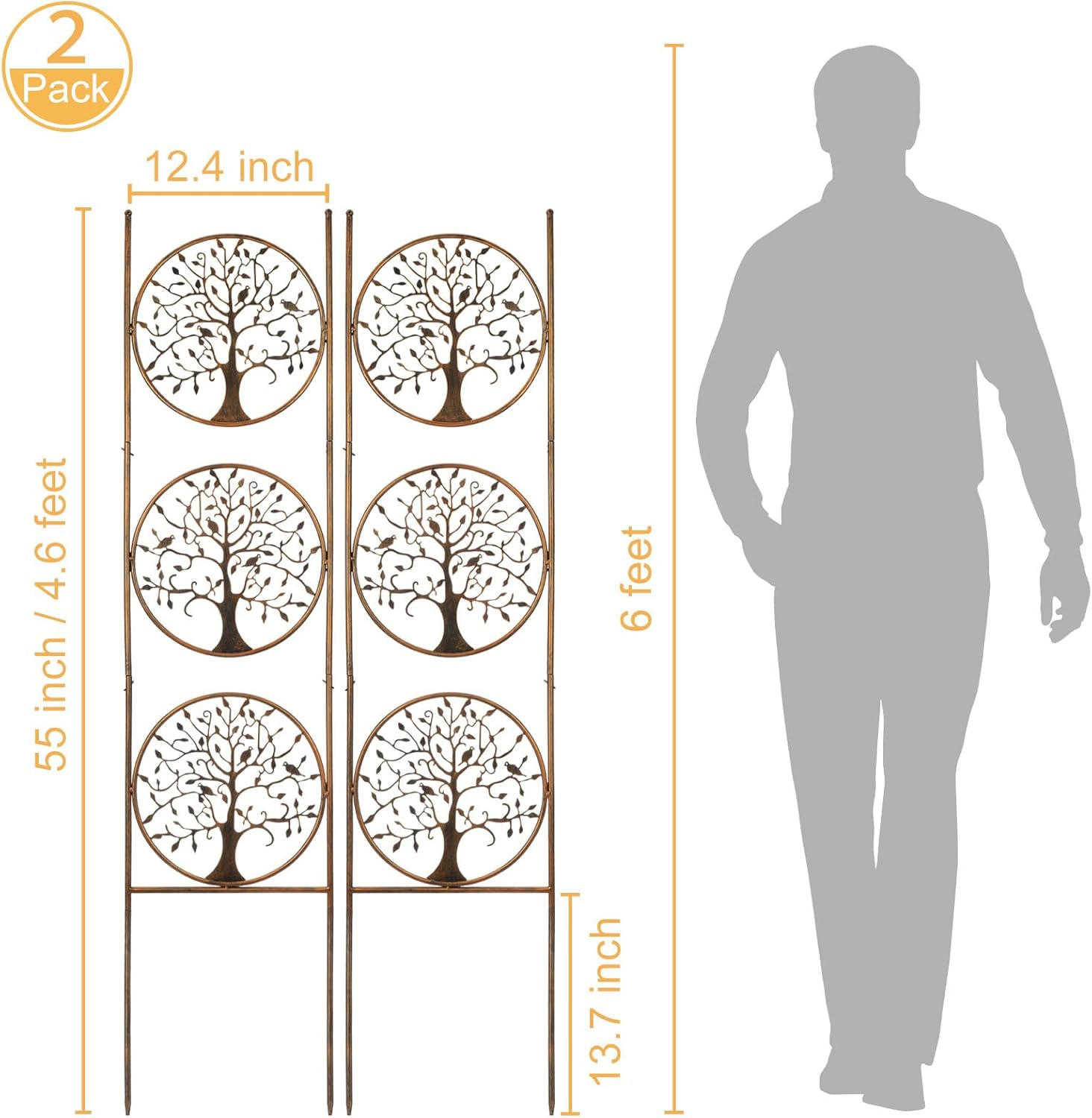 SUNNYPARK Set of 2 Tree in Life Metal Garden Trellis for Climbing Plants, Decorative Vegetables Flowers Vine Trellis for Outdoor Patio 55'' H x 12.4'' W