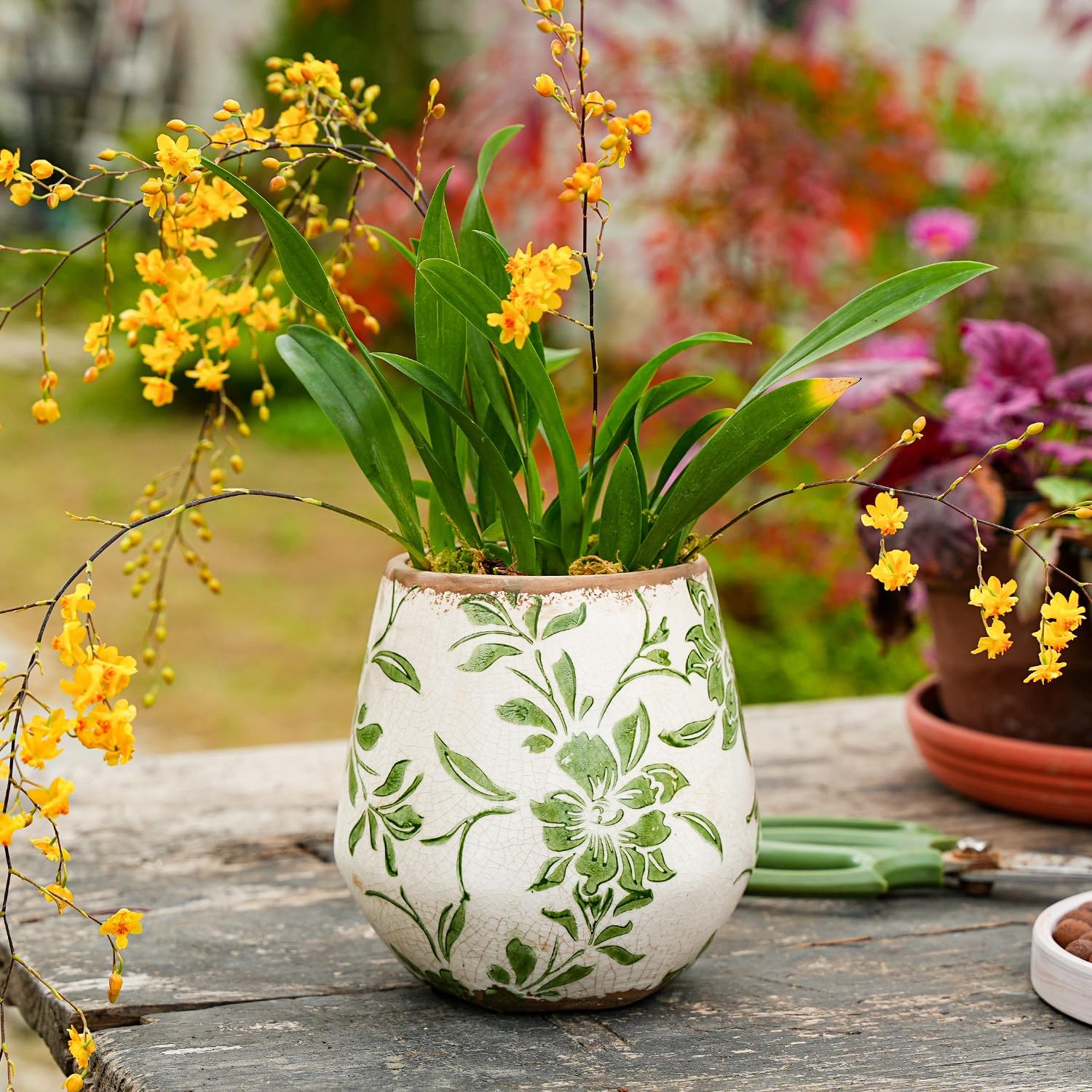 - Vintage Design: These ceramic flower pots feature ice crackle pattern and distressed craftsmanship with exquisite floral designs,that can perfectly match any decor style.