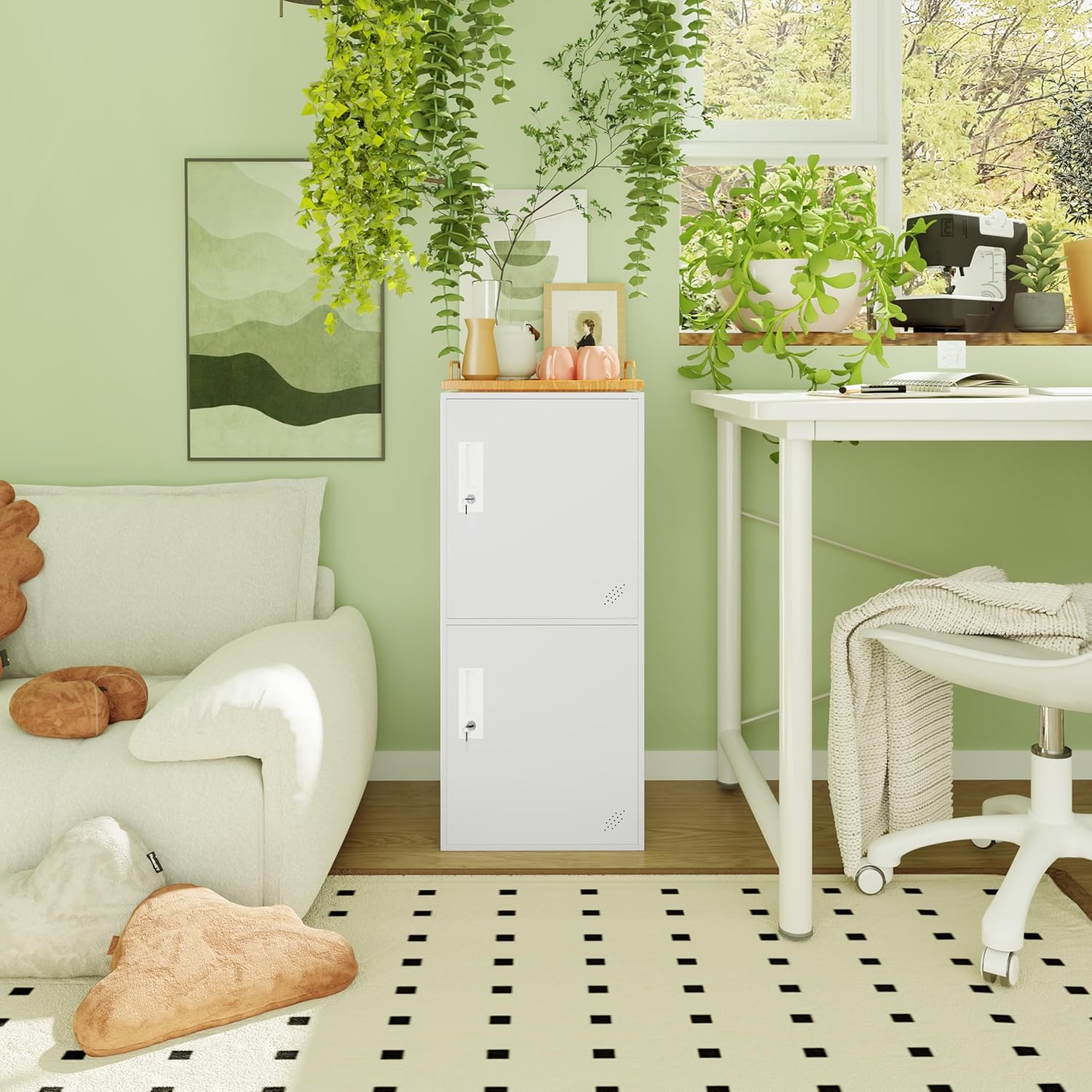 2 Door Metal Vertical Storage Locker for School, Office, Home,Gym,Stackable Steel Storage Cabinet with Lock,Anti-Falling Device. (2 Door, White)