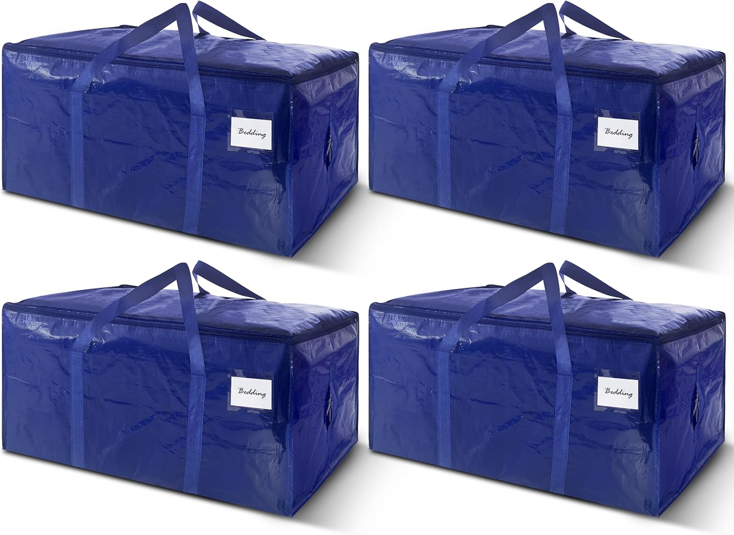 - [Effortless Packing & Folding] Skip the hassle of assembling cardboard boxes. These bags feature a wide zippered opening for quick packing of oversized items like bedding and linens. After use, they fold flat for compact storage, making them reusable for future moves or closet organization.