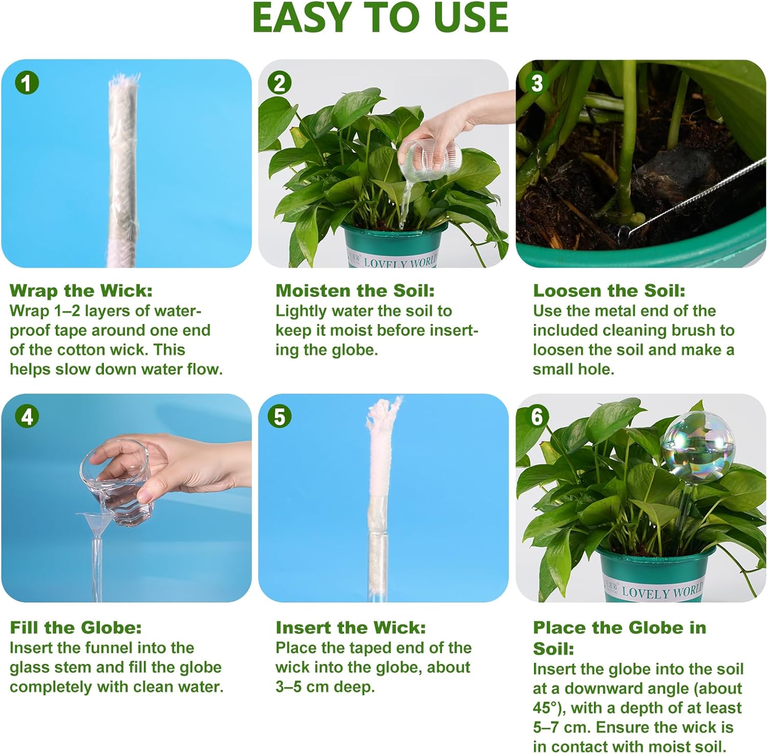 - Perfect Gift Choice: This set of glass watering globes is an ideal gift for plant lovers, frequent travelers, or busy professionals. These self water globes ensure plants are properly watered, even when you're not around. The included plant watering devices are perfect for anyone who needs an easy and effective way to maintain plant health.