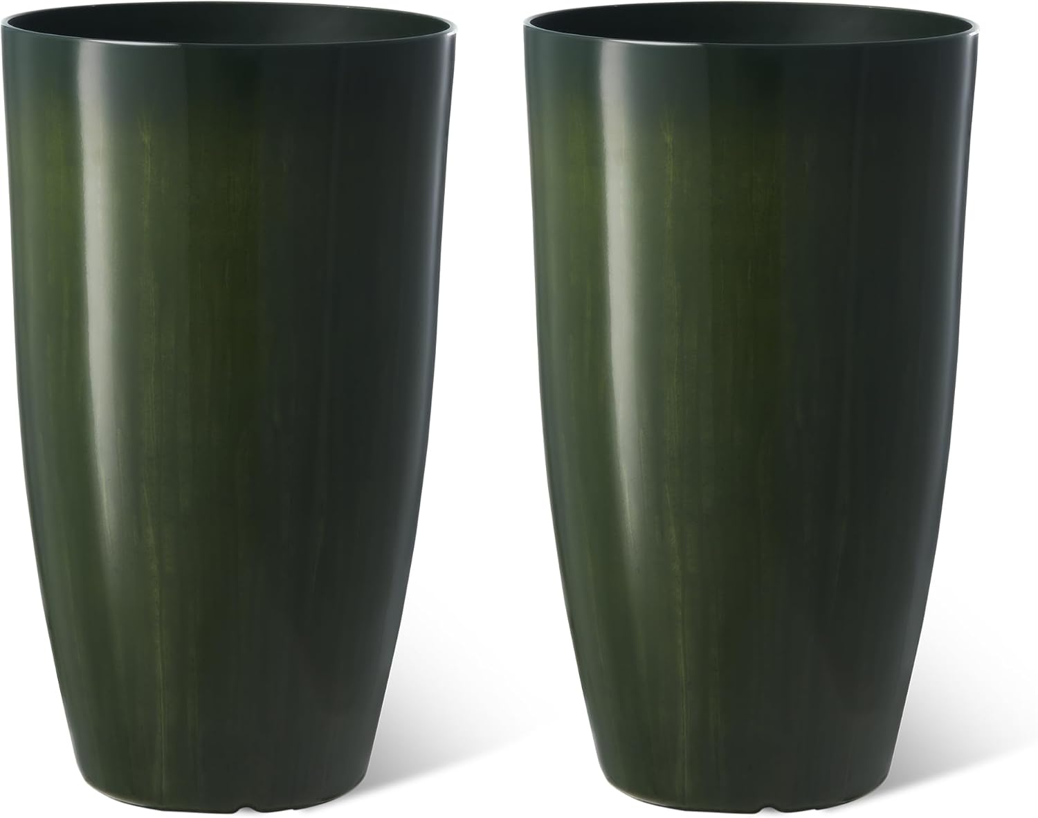 Glitzhome 23.5" H Large Tall Planter for Outdoor Plants,Set of 2 Plastic Tall Planters with Drainage Holes,Round Tapered Faux Ceramic Gradient Green Flower Tree Pots for Porch Patio Indoor Outdoor