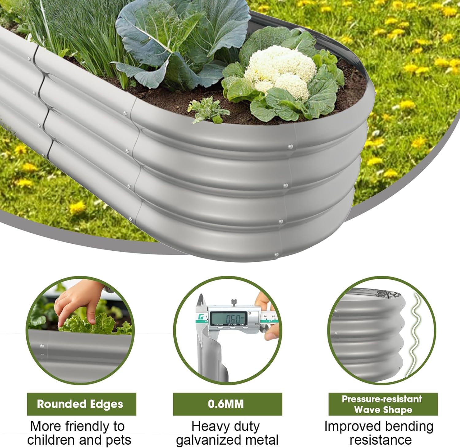 - 【Safety-Friendly】Our outdoor metal planter box feature an oval design with smooth edges to effectively avoid the risk of cuts, providing you with a safe gardening experience. Whether you're planting, watering, or performing daily maintenance, you can operate with peace of mind. Even if your children or pets are playing around the metal planter box, there's no need to worry.