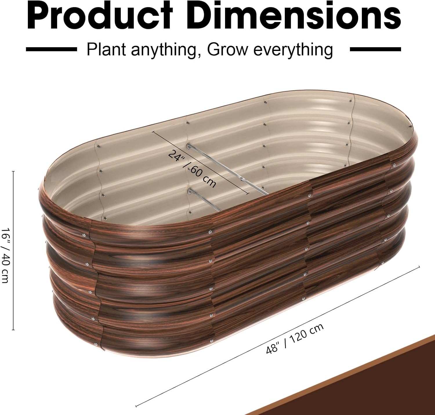 4x2ft Oval Galvanized Raised Garden Bed Kits 16" Tall Outdoor Large Metal Modular Planter Box 9-in-1 Raised Beds for Gardening,Vegetables,Fruits,Flowers & Herbs (Brown)
